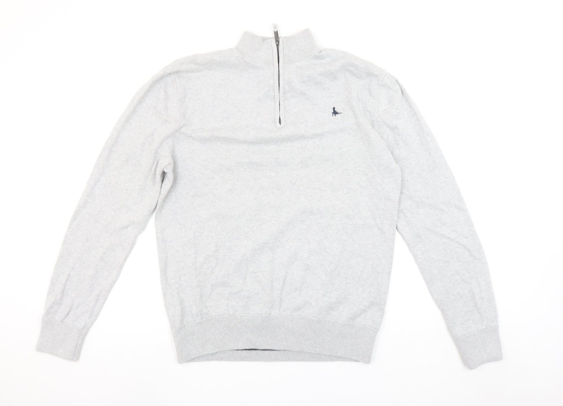 Jack Wills Men's Grey L Half Zip High Neck Cotton Jumper