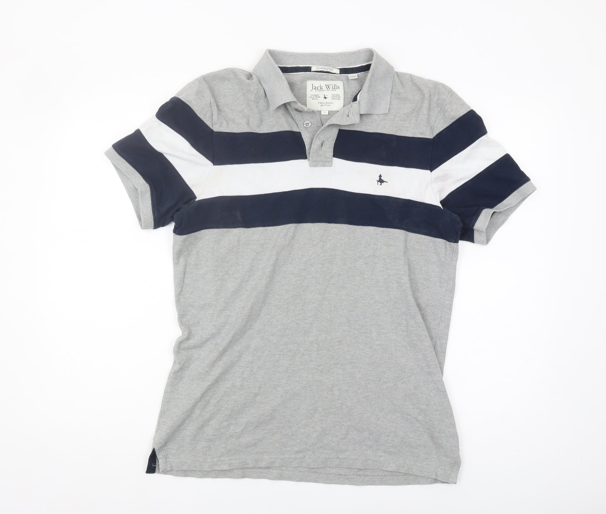 Jack Wills Men's Grey Striped Polo Shirt, Size S, Classic Fit