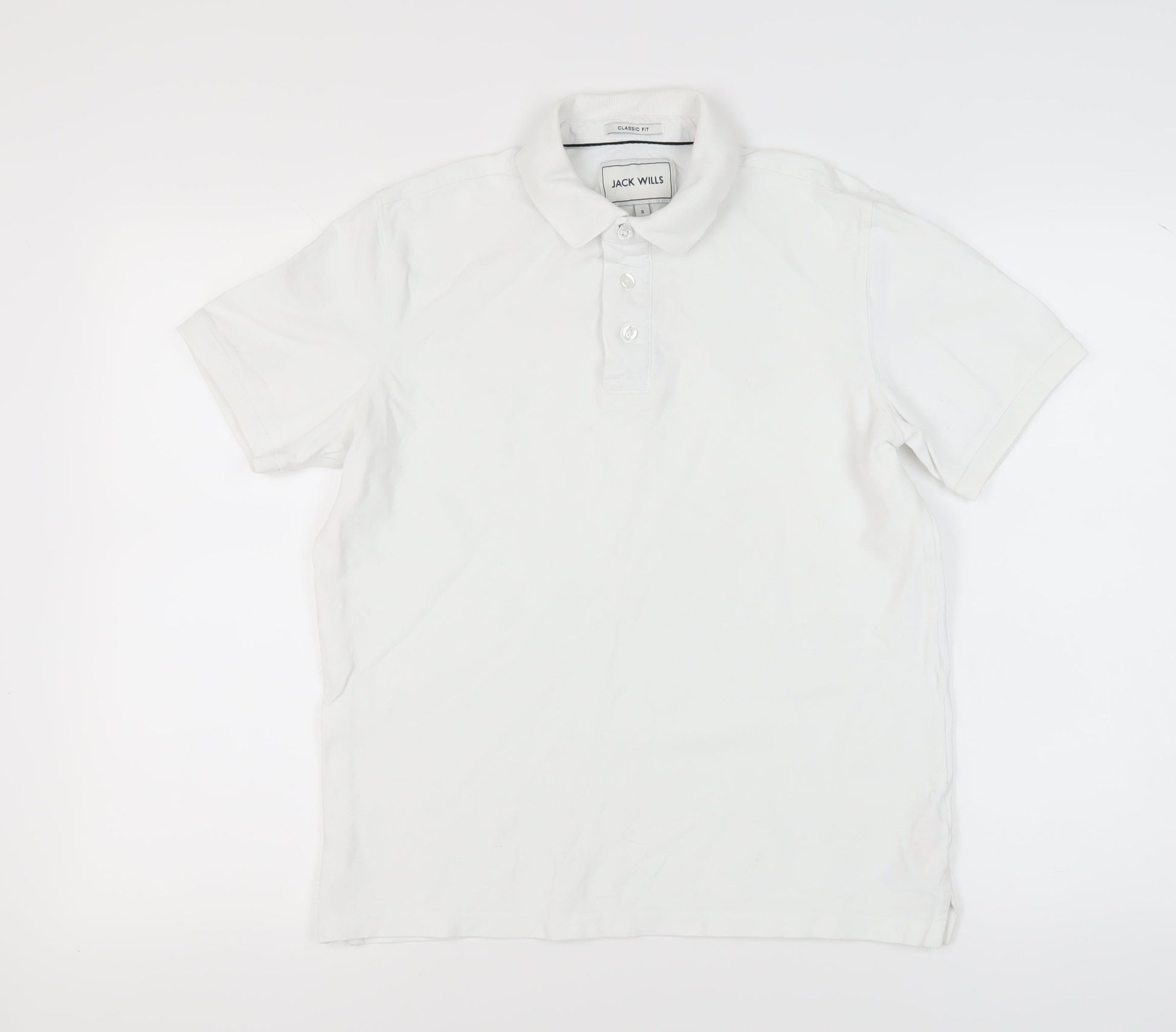 Jack Wills Men's White Polo Shirt - Size S, Classic Style