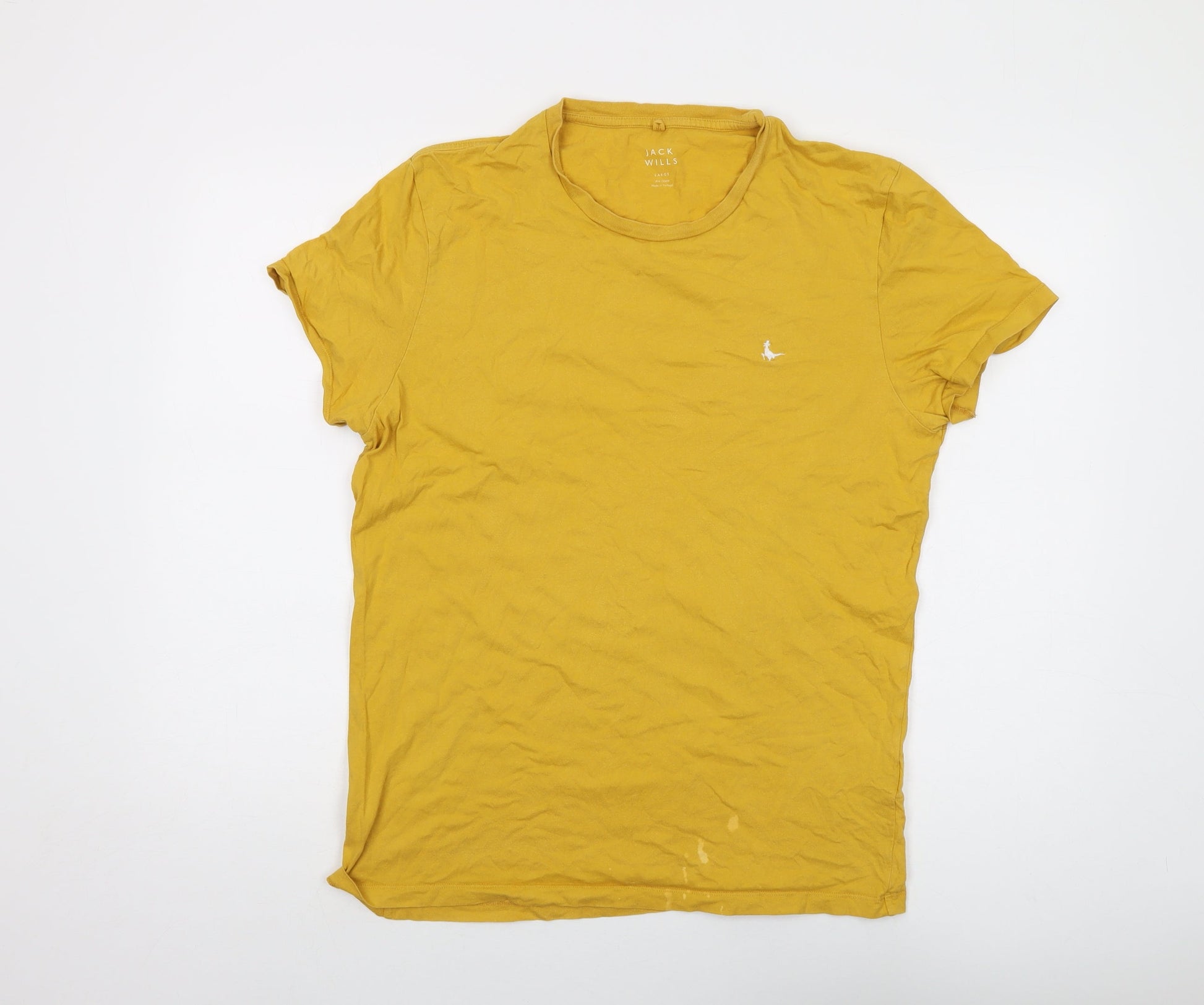 Jack Wills Mens Yellow Cotton T-Shirt Size L Crew Neck