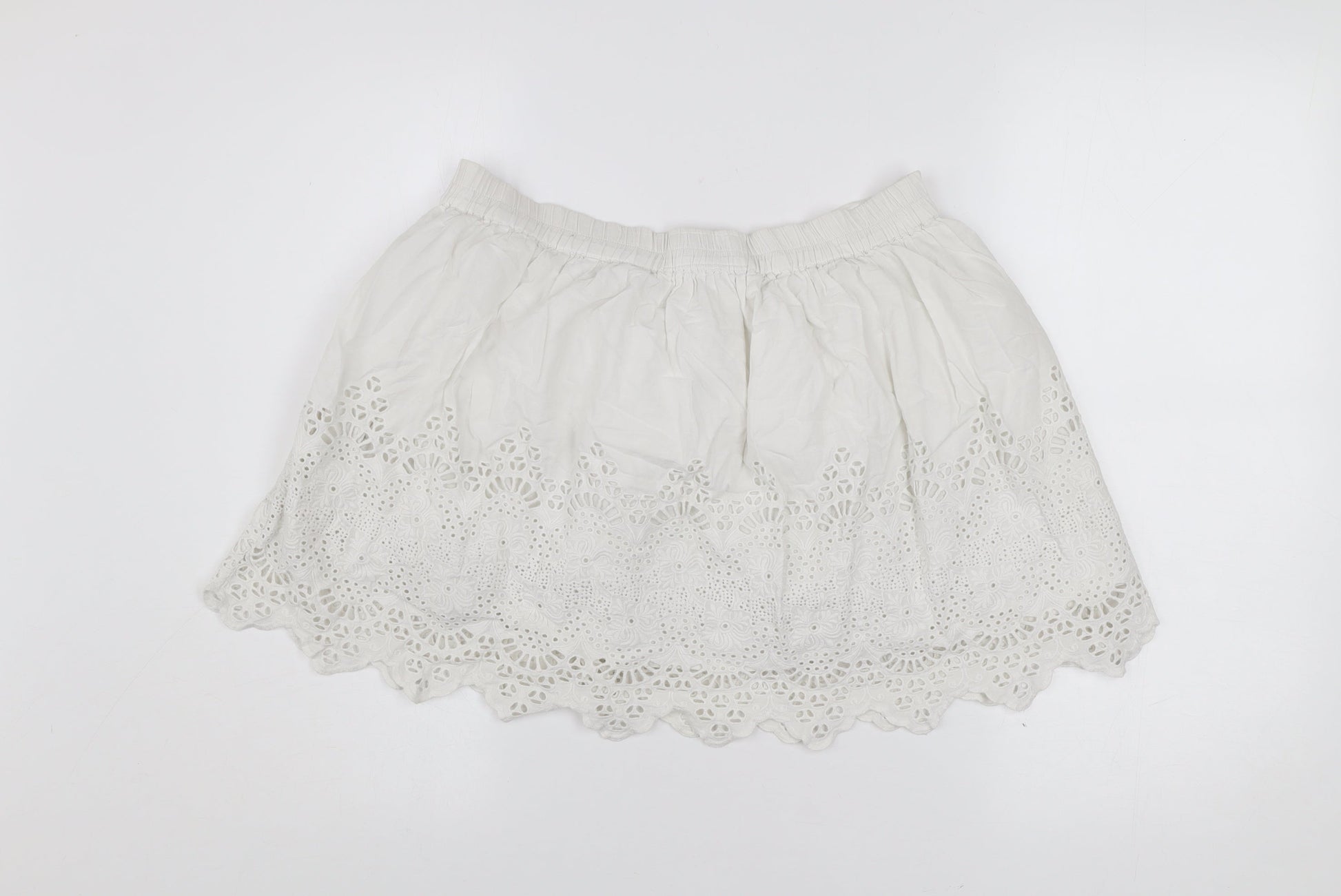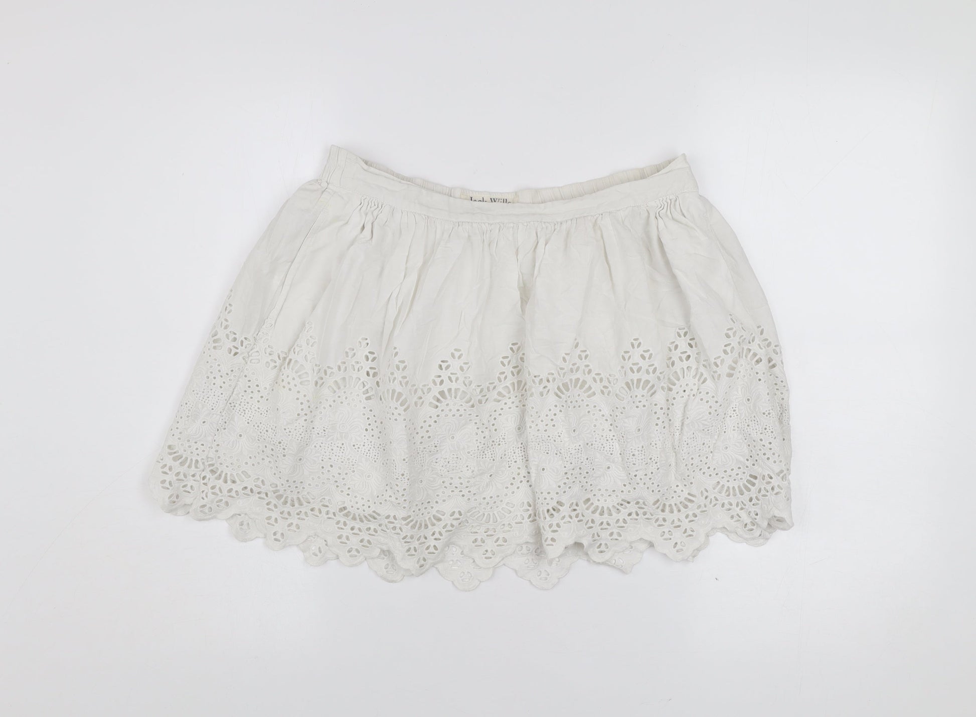 Jack Wills Women White UK 10 A-Line Cotton Embroidered Skirt