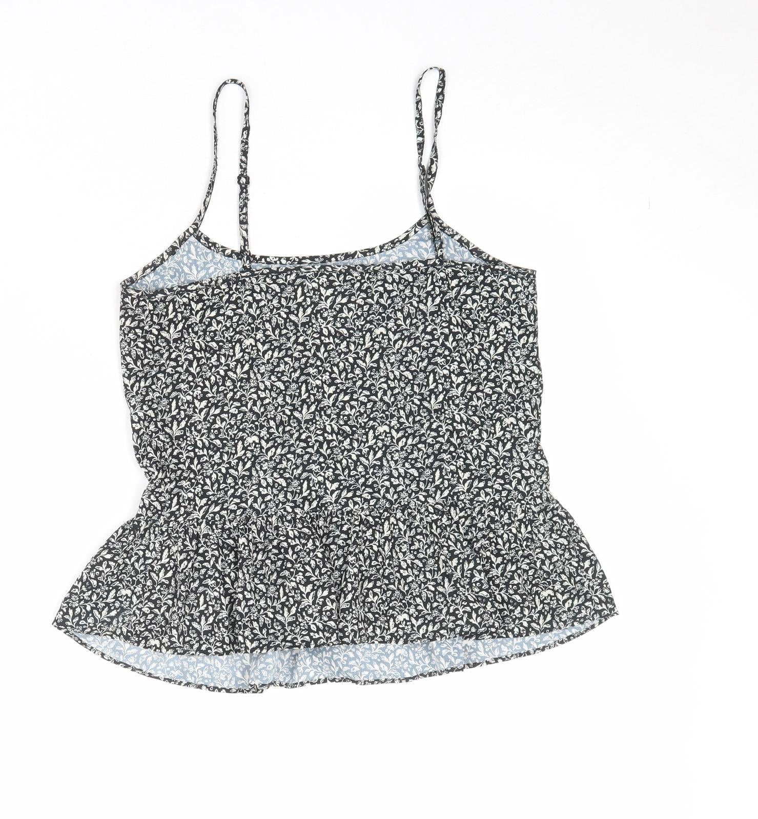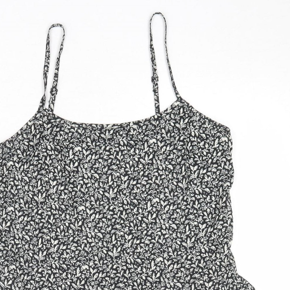 Jack Wills Womens Black Geometric Polyester Basic Tank Size 8 Round Neck