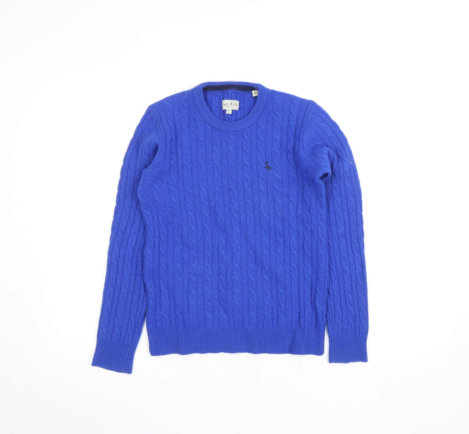 Jack Wills Women's Blue Cable-Knit Merino Wool Jumper Size 12
