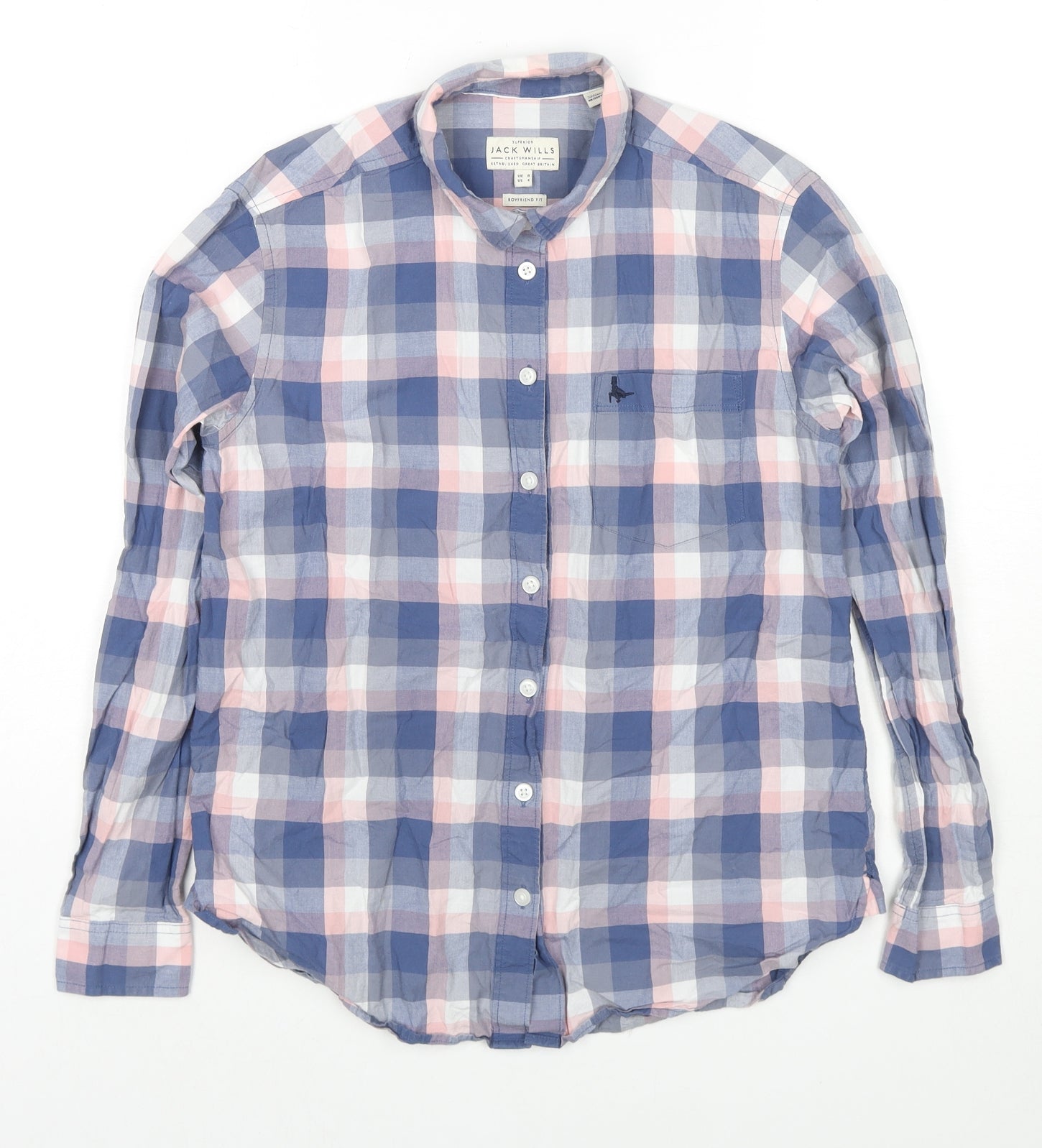 Jack Wills Womens Blue Check Cotton Basic Button-Up Size 8 Collared