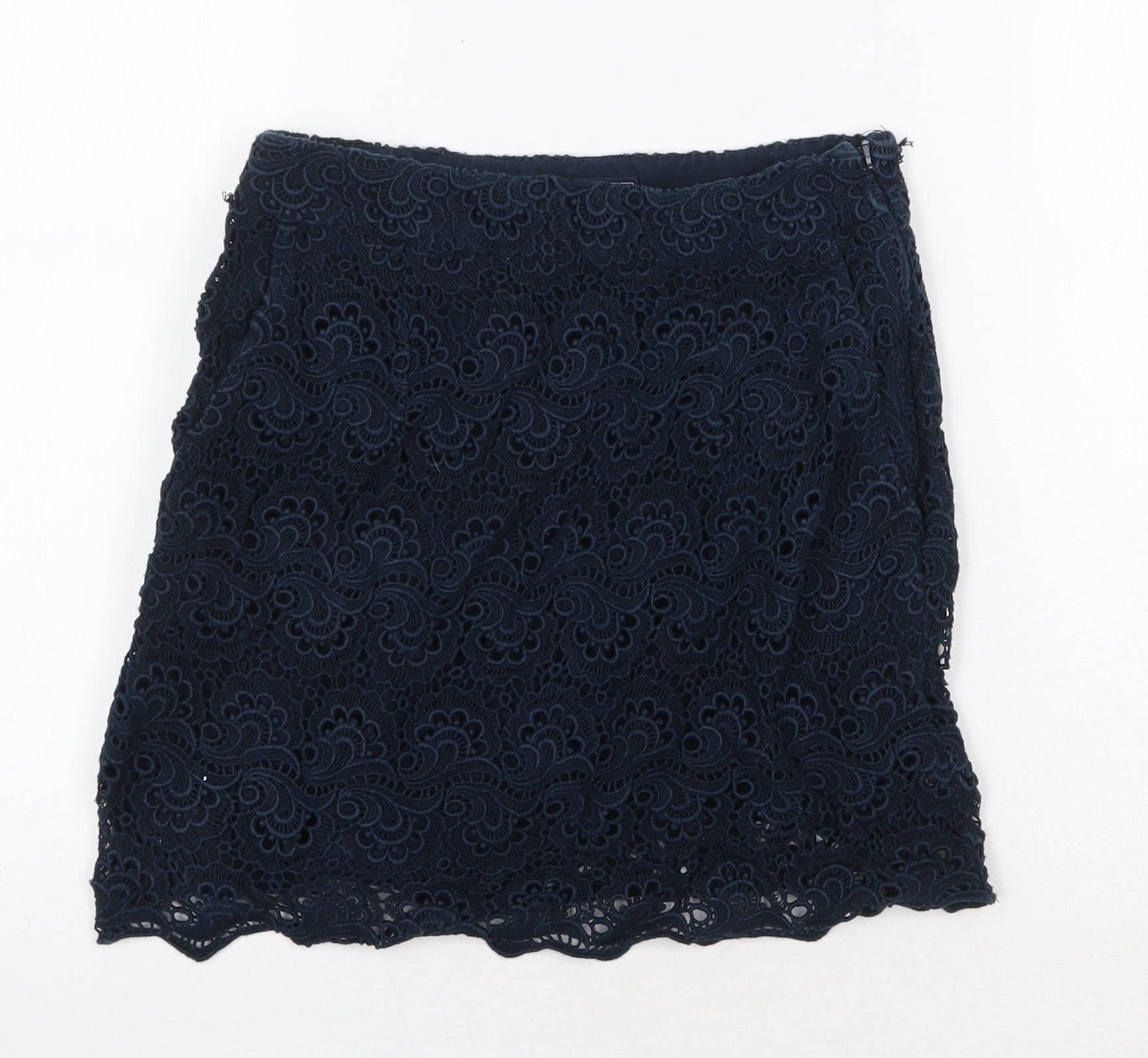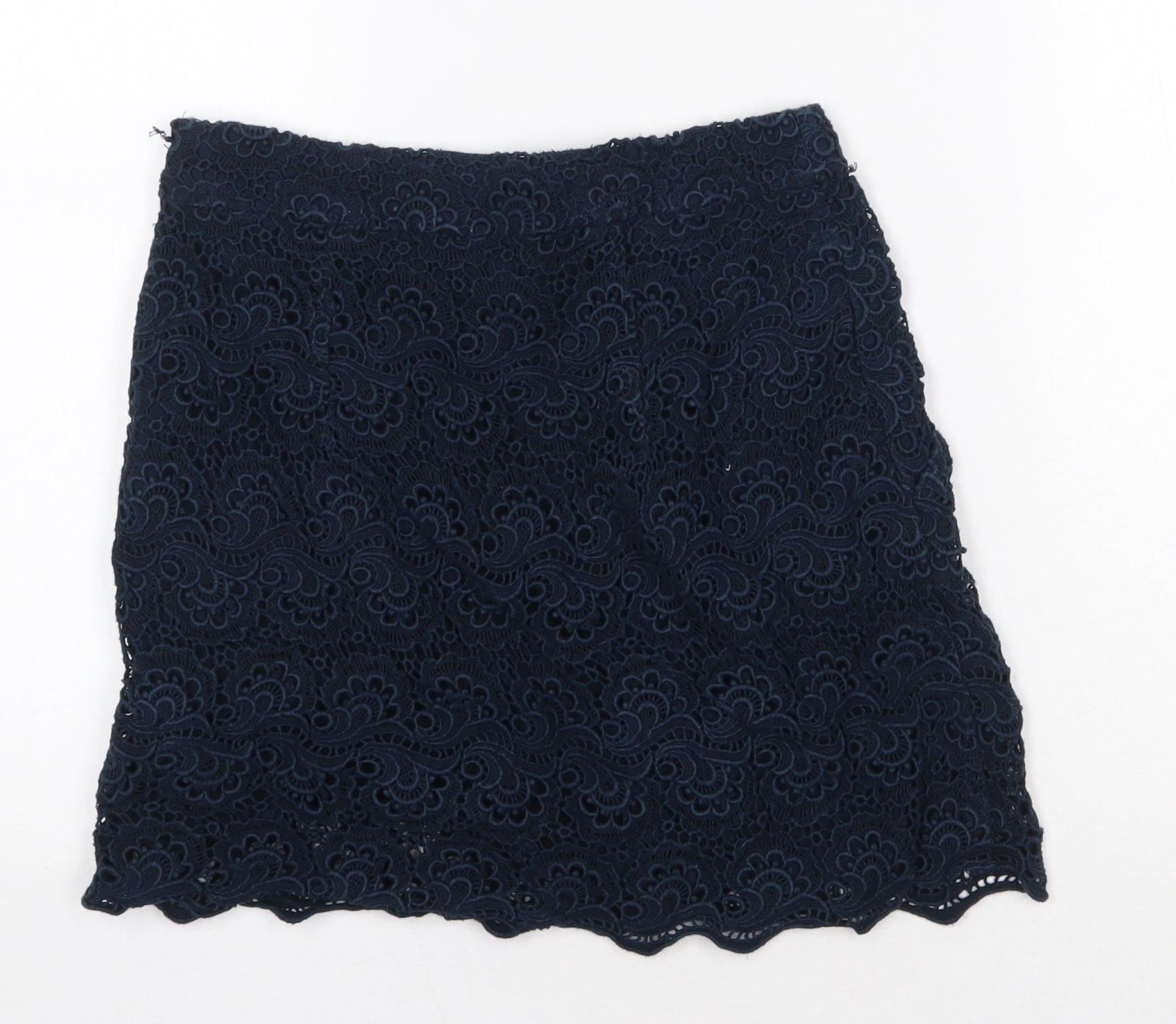Jack Wills Womens Blue Geometric Cotton Mini Skirt Size 8 Zip