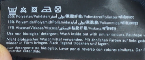 - Material Breakdown: 65% Polyester 10% Polyamide 17% Viscose