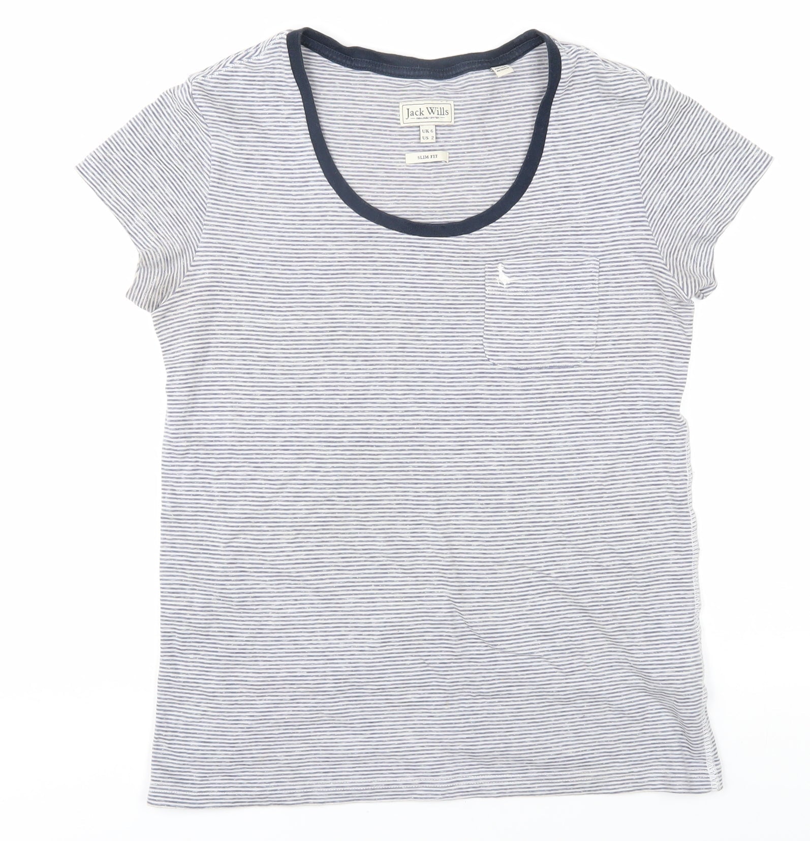 Jack Wills Women's Blue Striped Slim T-Shirt - Size 6