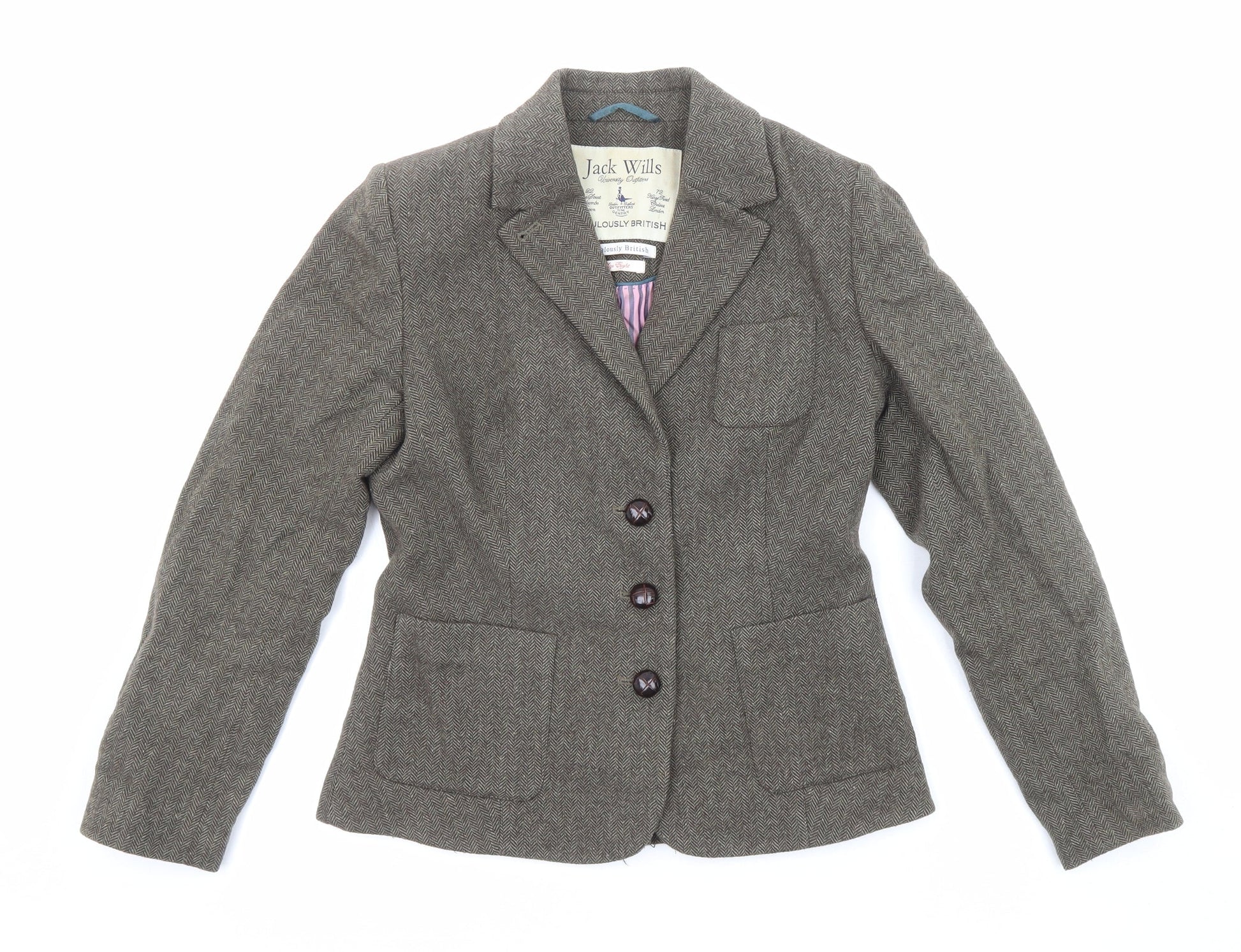 Jack Wills Womens Green Herringbone Wool Jacket Suit Jacket Size 8