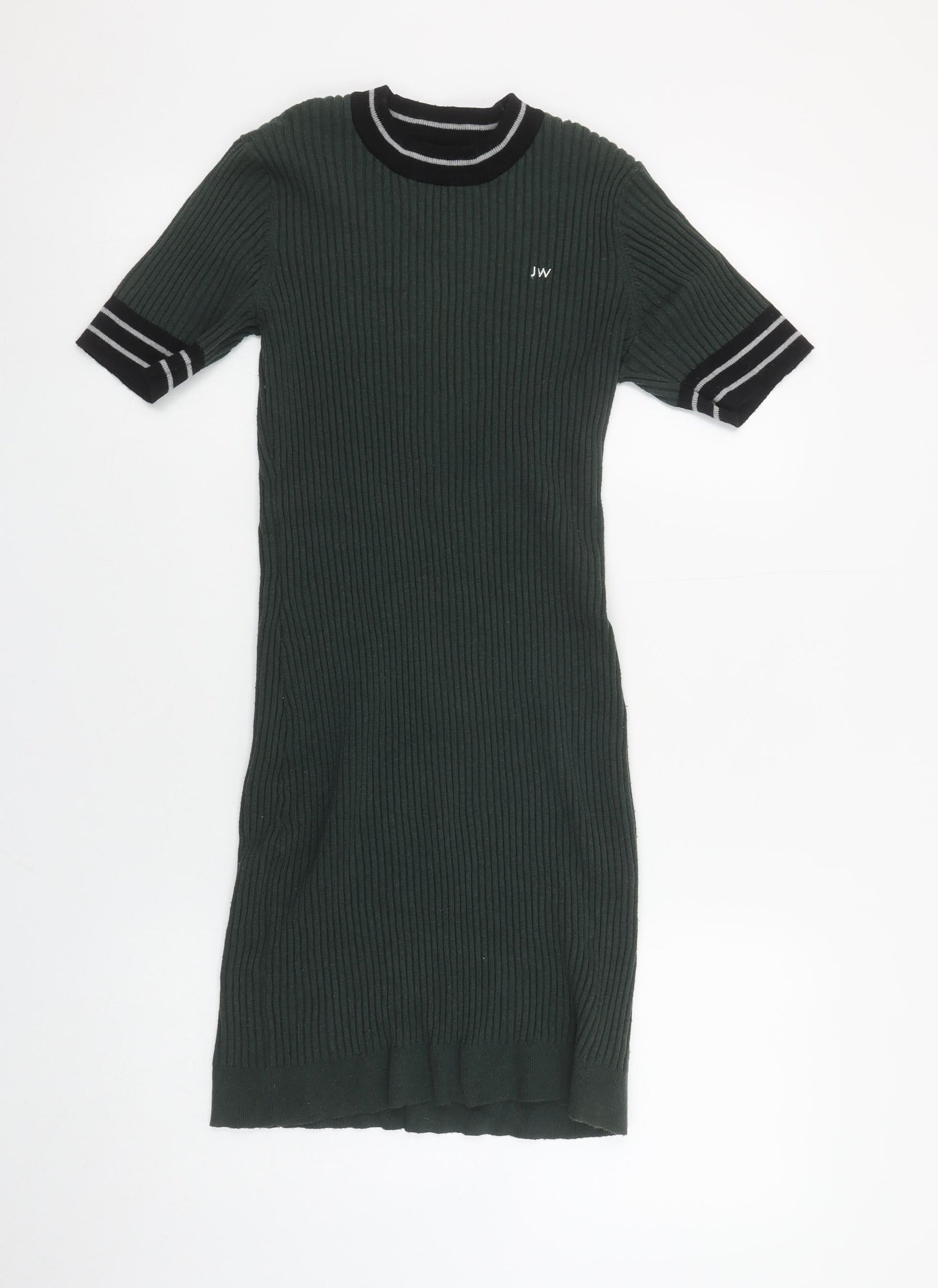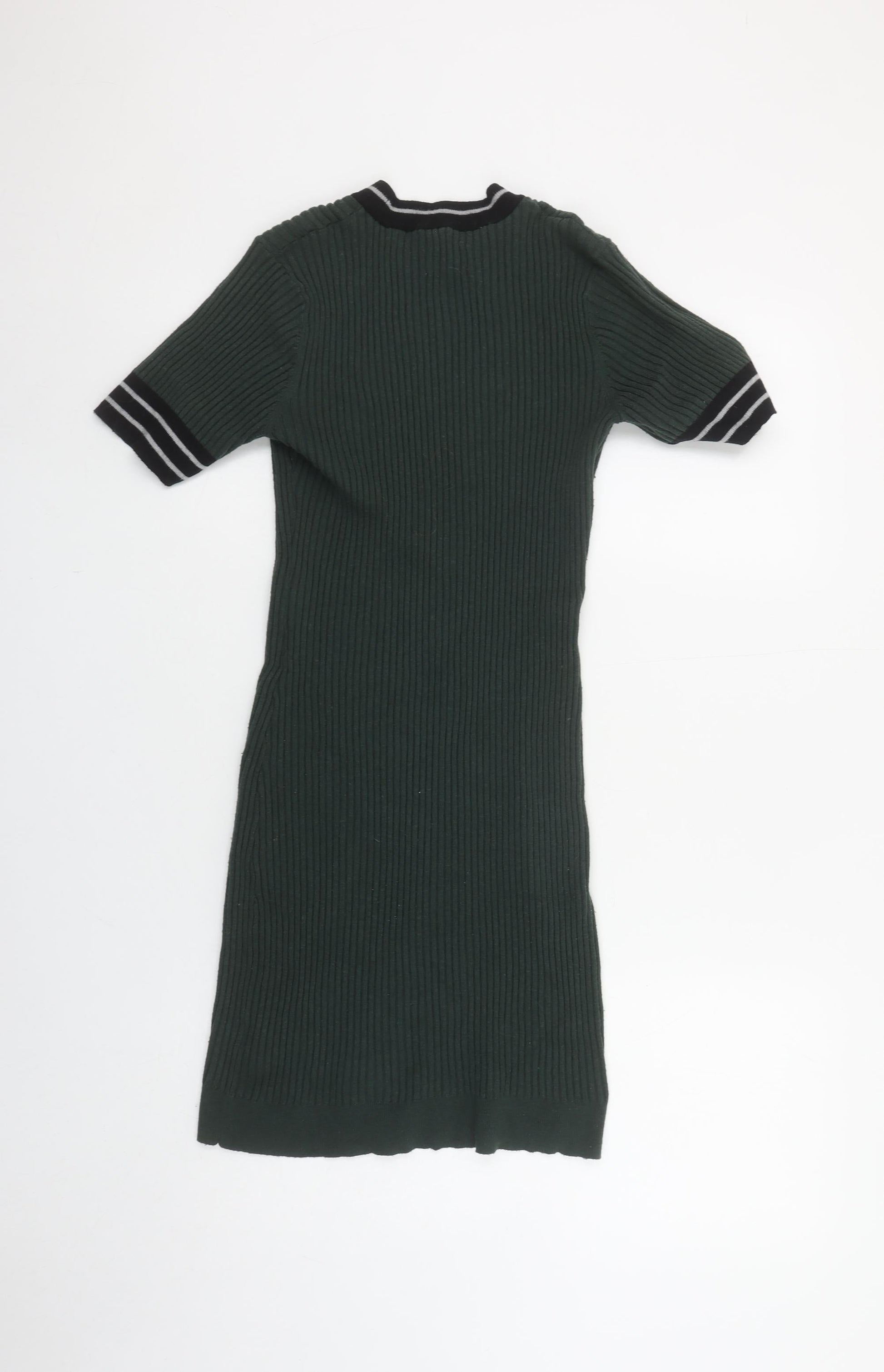 Jack Wills Women's Green Ribbed Bodycon Knit Dress Size 12