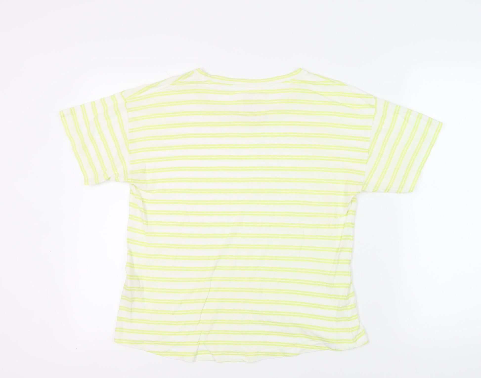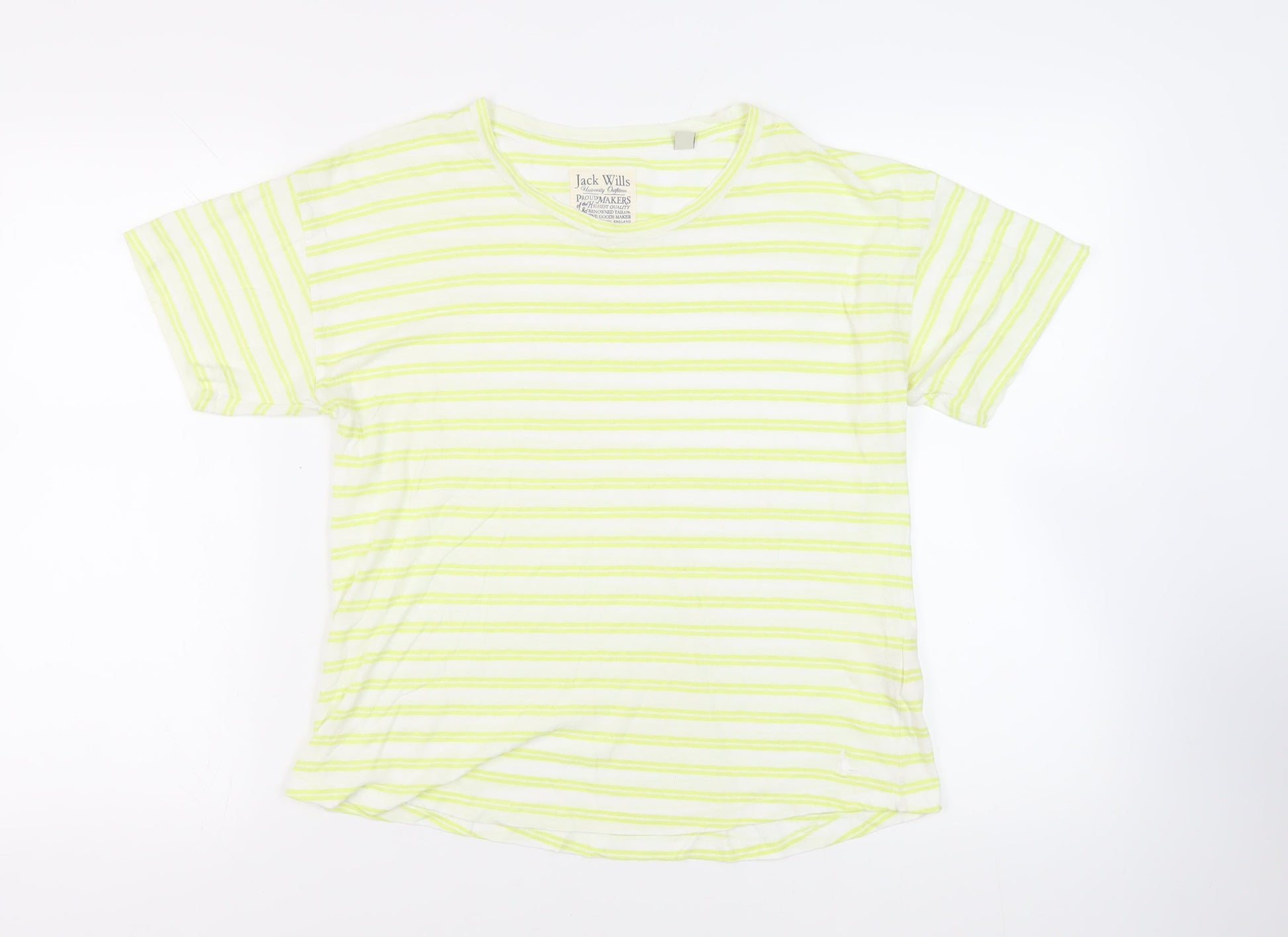 Jack Wills Womens Green Striped Cotton Basic T-Shirt Size 12 Crew Neck