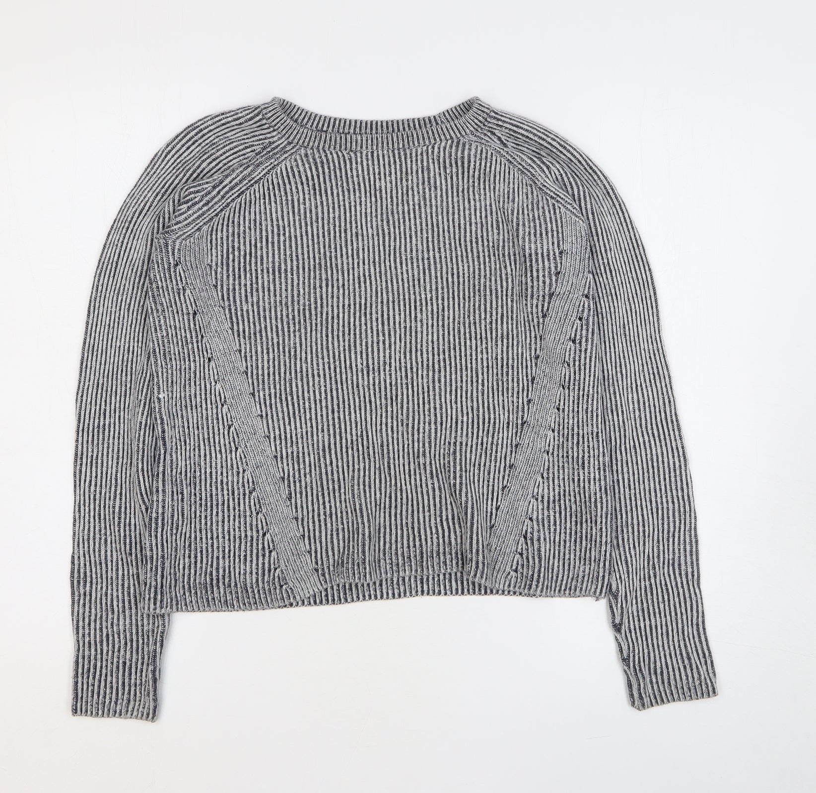 Jack Wills Womens Grey Round Neck Striped Cotton Pullover Jumper Size 8