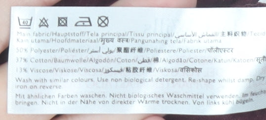 - Material Breakdown: 50% Polyester 37% Cotton 13% Viscose