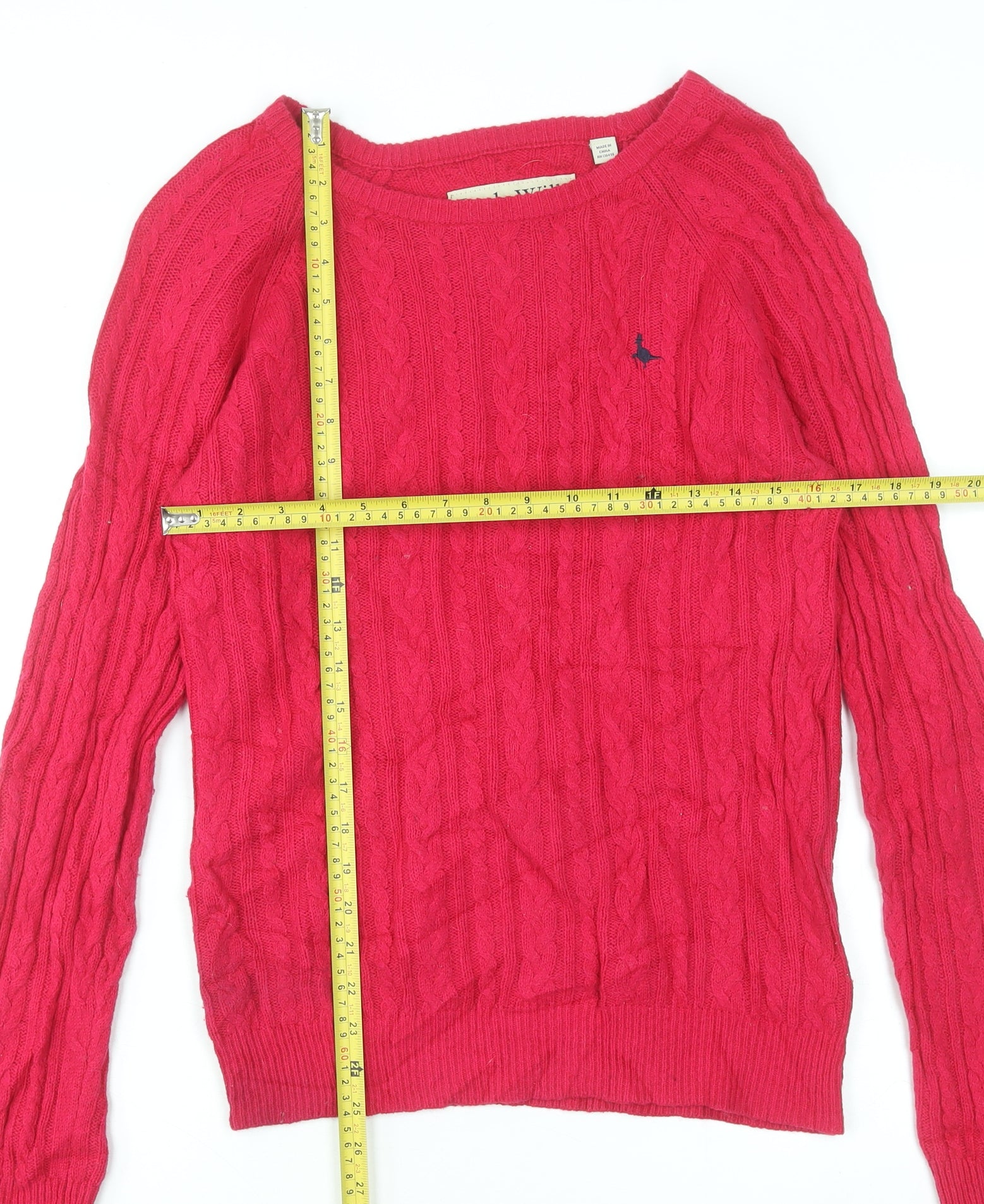 Jack Wills Women's Red Merino Wool Cable-Knit Jumper Size 12