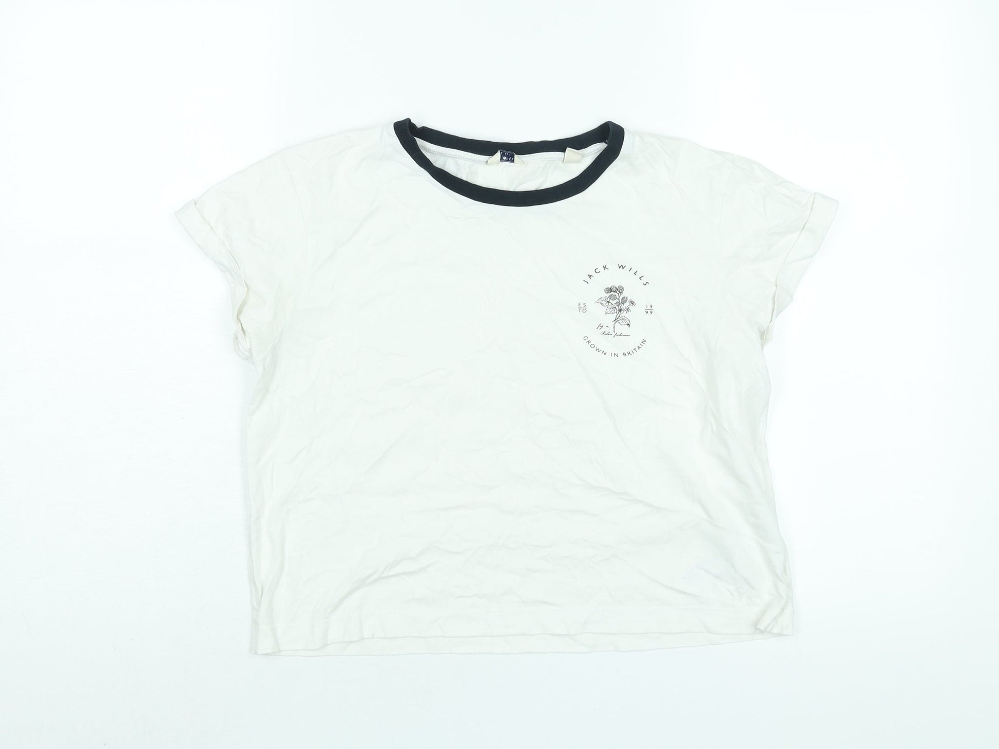 Jack Wills Womens White Cotton Basic T-Shirt Size 10 Round Neck - Floral Logo Print
