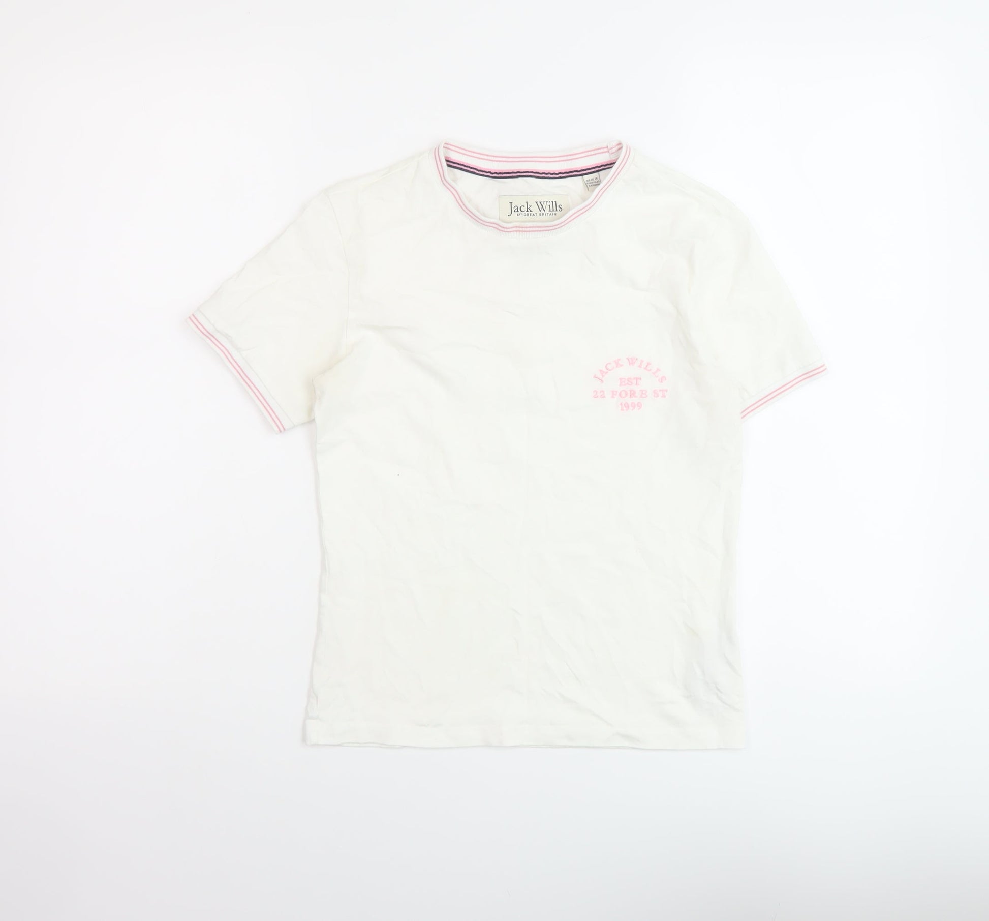 Jack Wills Womens White Cotton Basic T-Shirt Size 8 Crew Neck