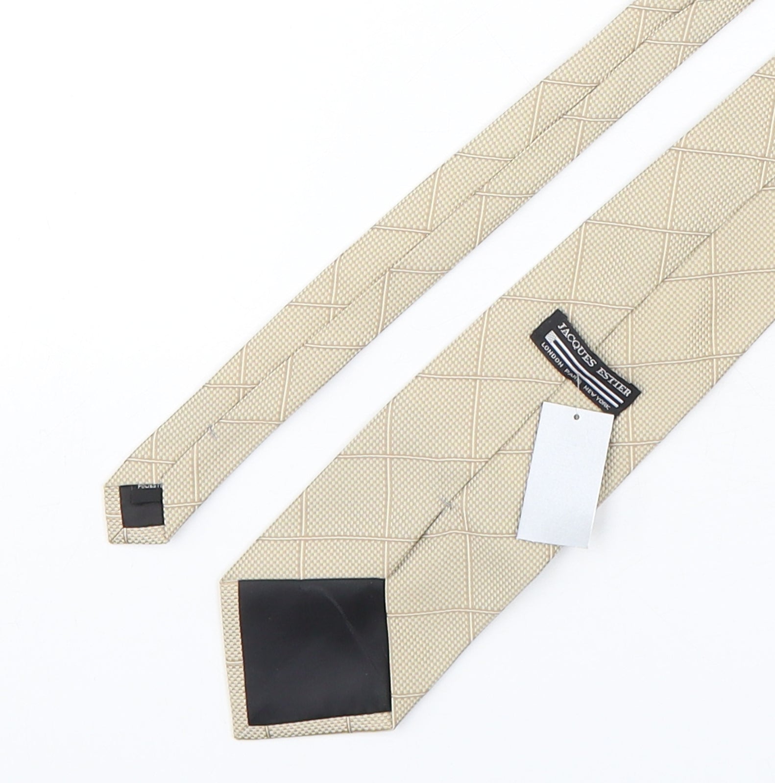 Jacques Estier Mens Beige Plaids & Checks Polyester Pointed Tie One Size