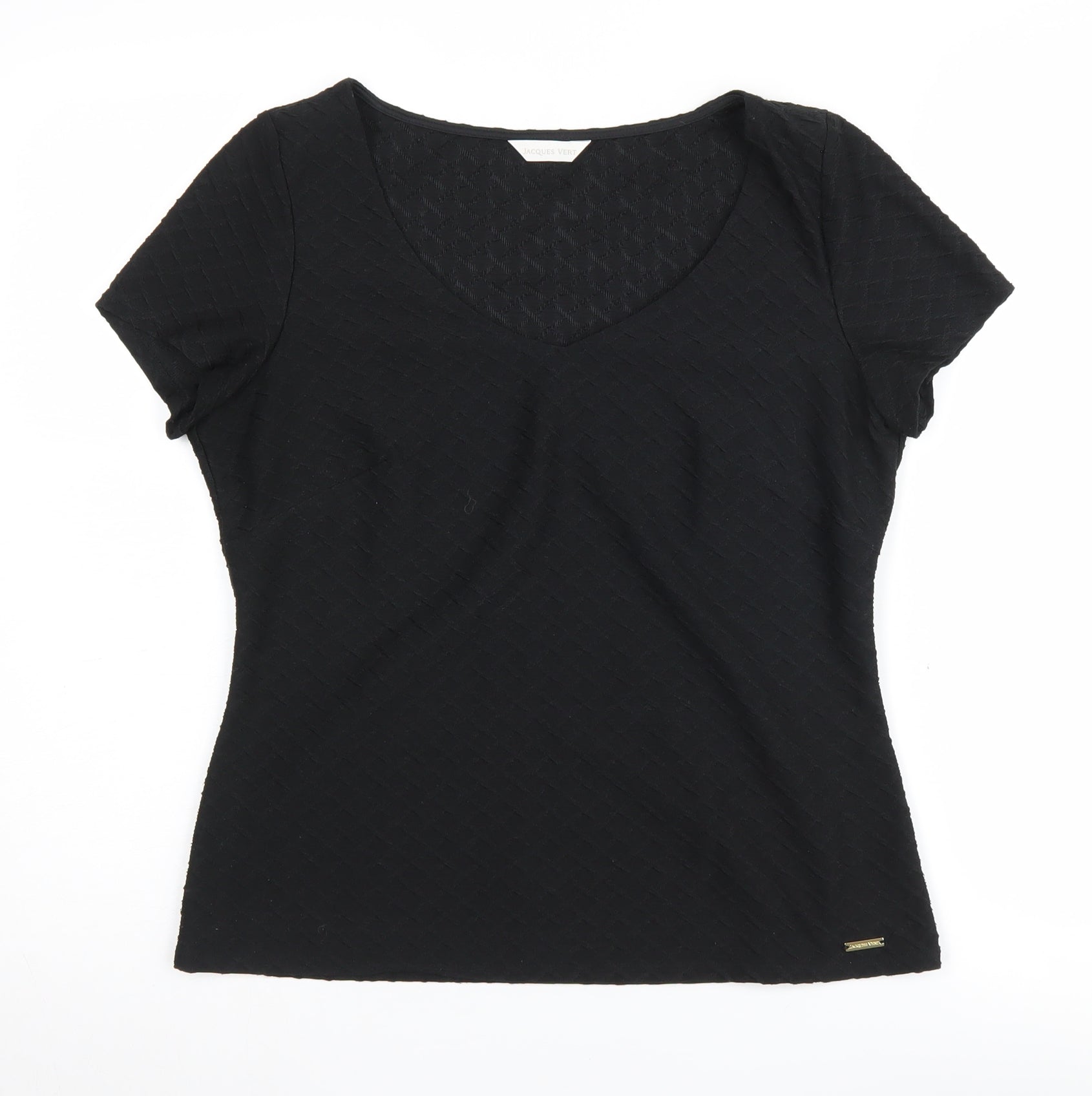 Jacques Vert Women's Black Short Sleeve V-Neck Top