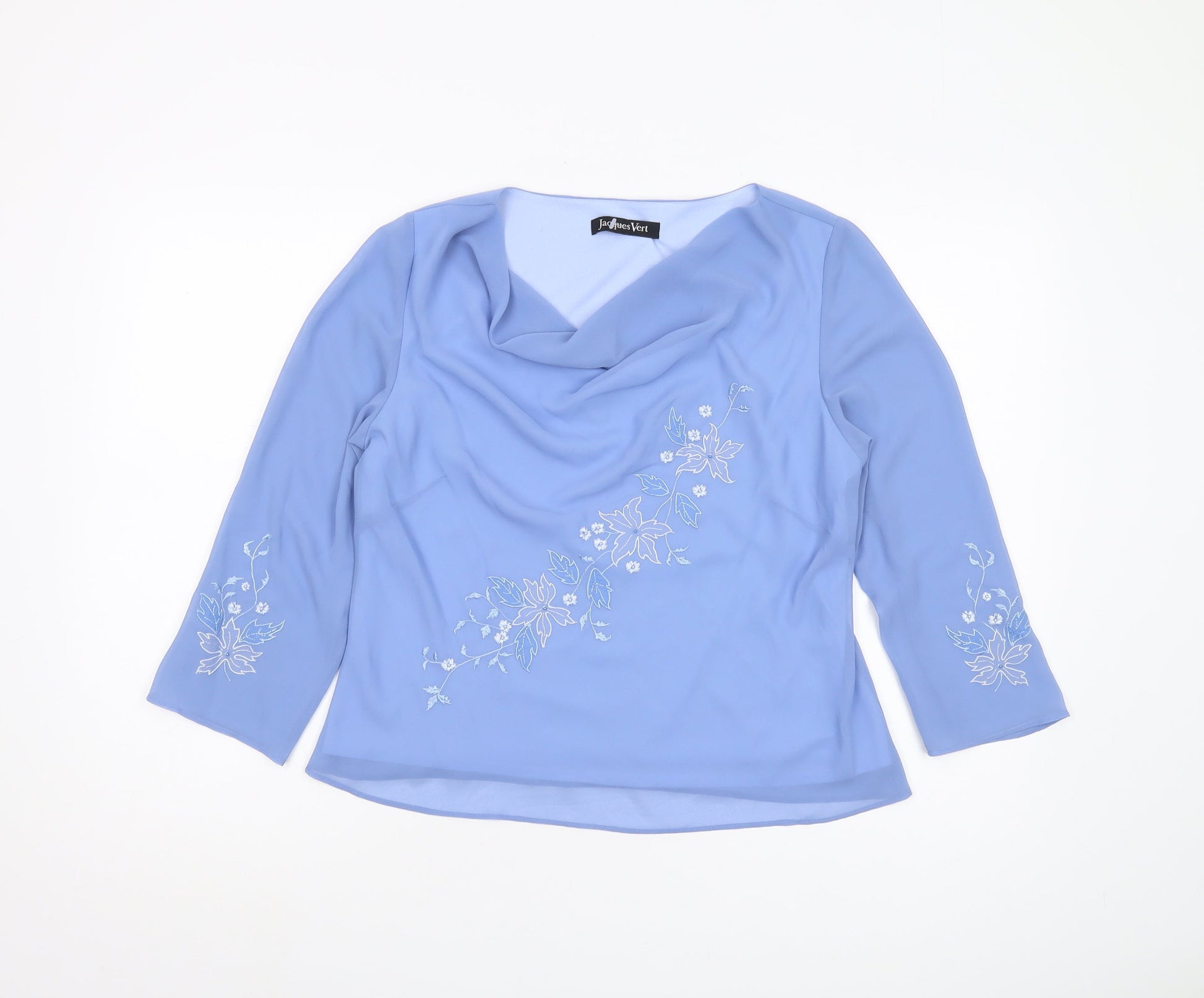 Jacques Vert Women's Blue Embroidered Cowl Neck Blouse