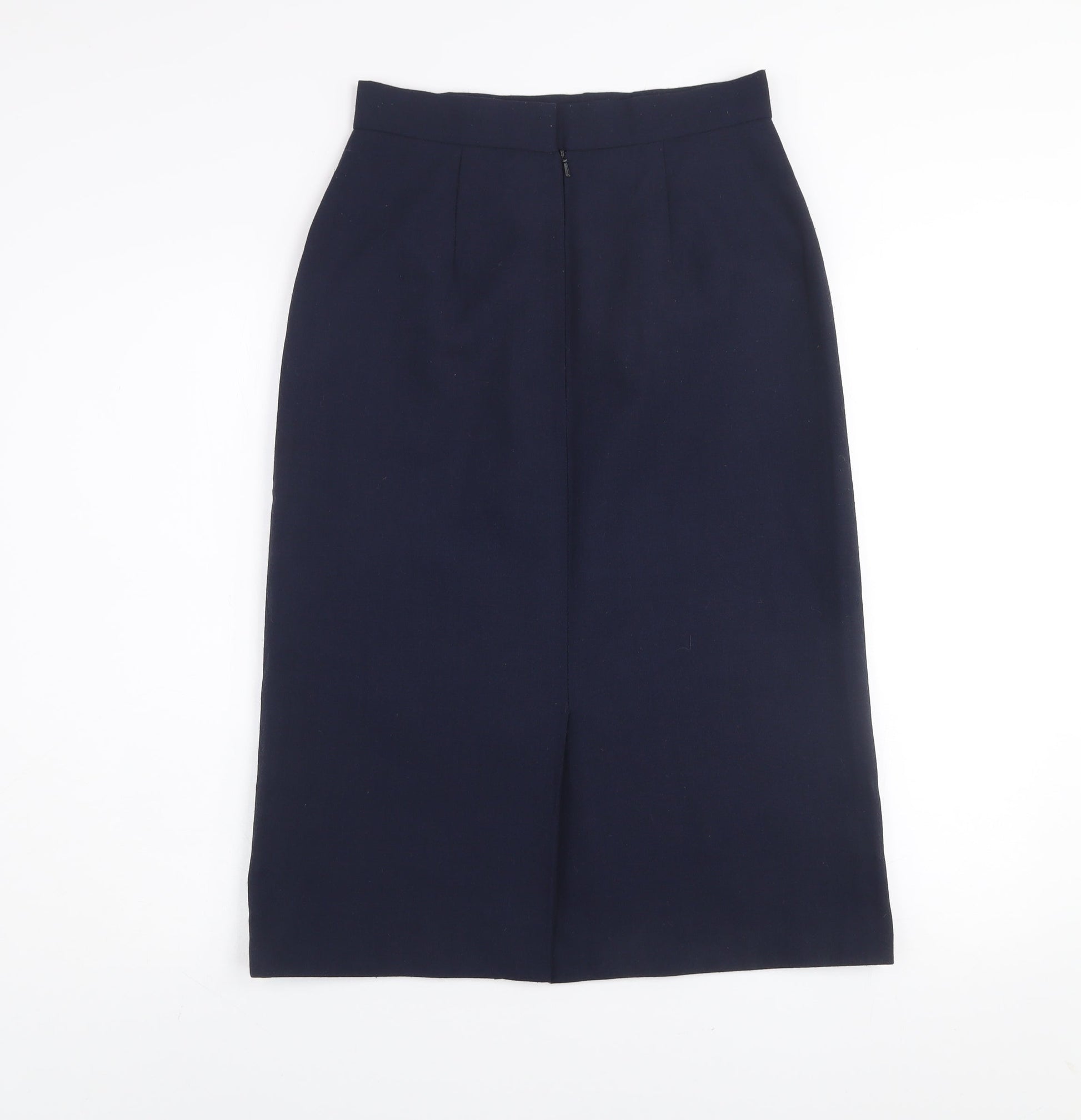 Jacques Vert Women's Blue Wool Blend Midi Pencil Skirt Size 10