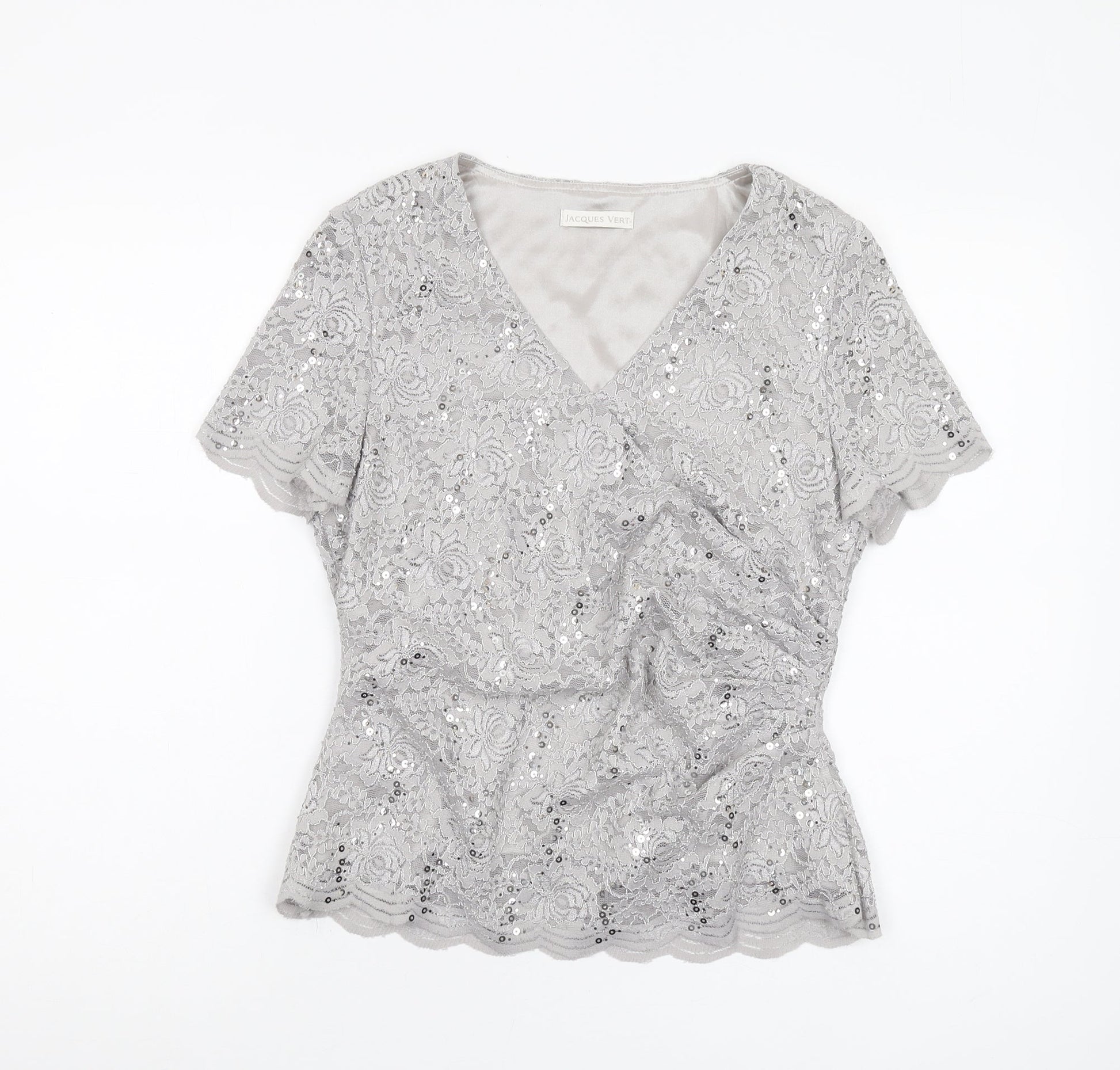Jacques Vert Women's Grey Lace Sequin Wrap Blouse, Size 10