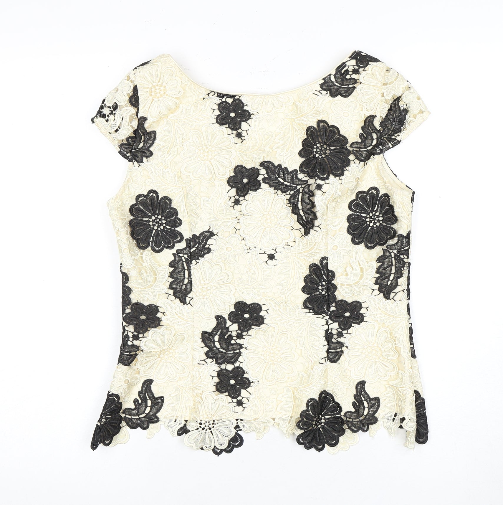 Jacques Vert Women's Ivory Black Floral Lace Blouse