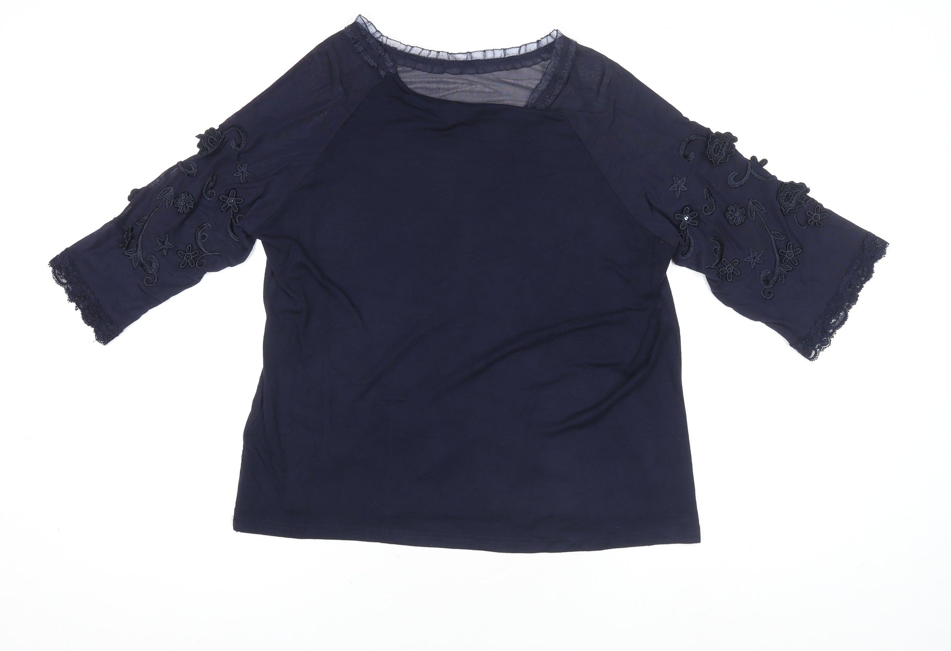 Jacques Vert Women's Navy Blue Embroidered Lace Tunic Blouse Size L