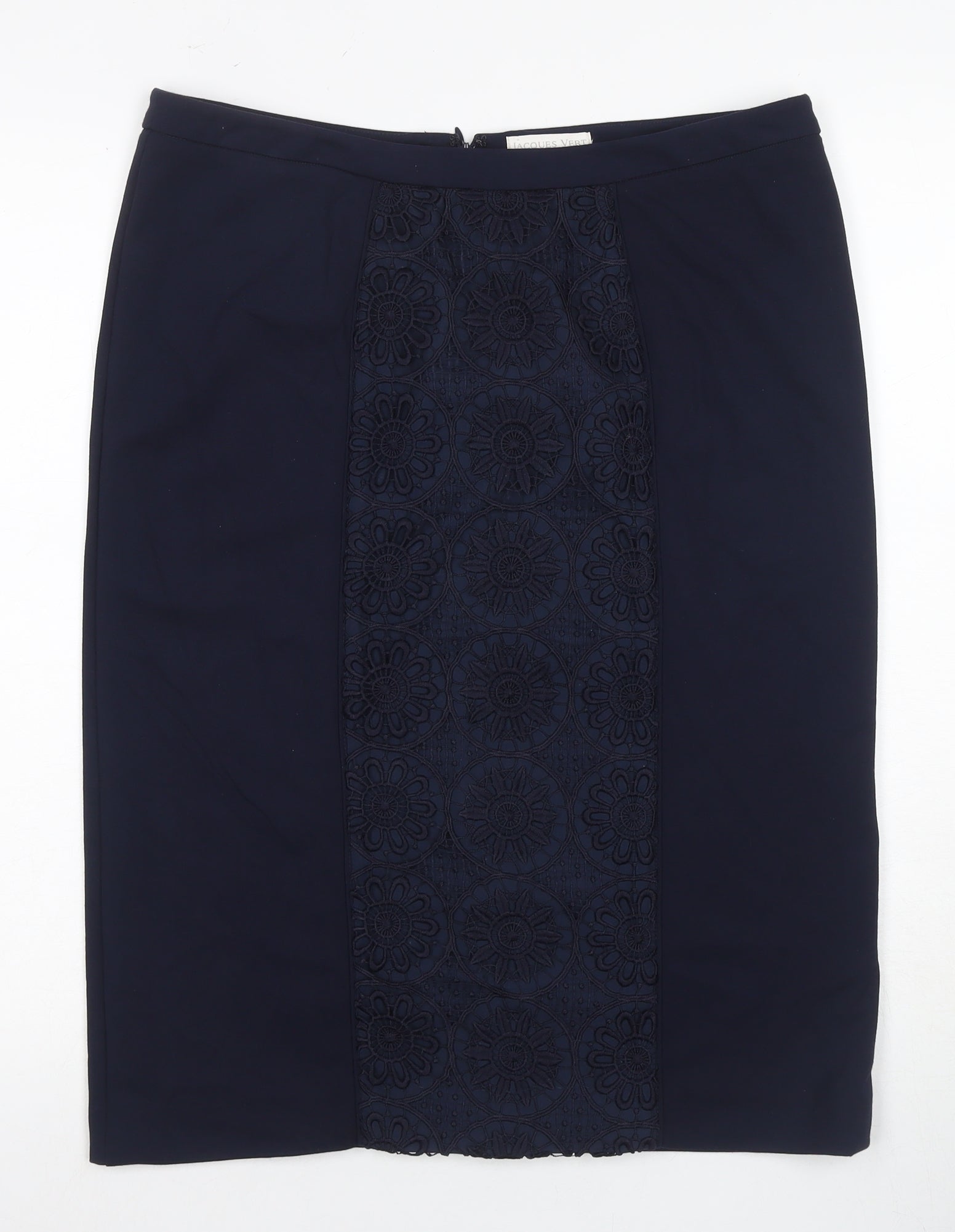 Jacques Vert Women's Navy Embroidered Pencil Skirt Size 14