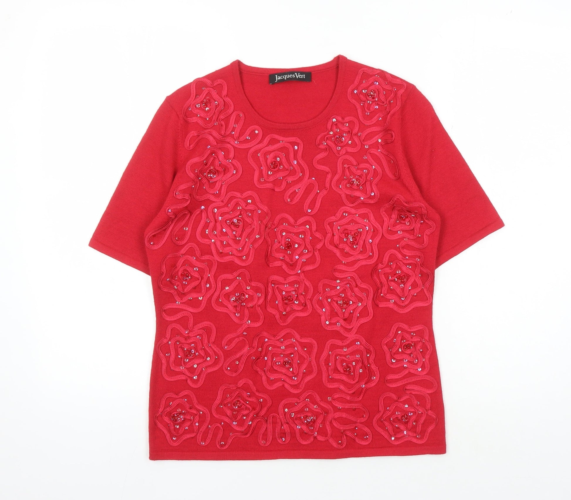 Jacques Vert Women's Red Sequin Knit T-Shirt S