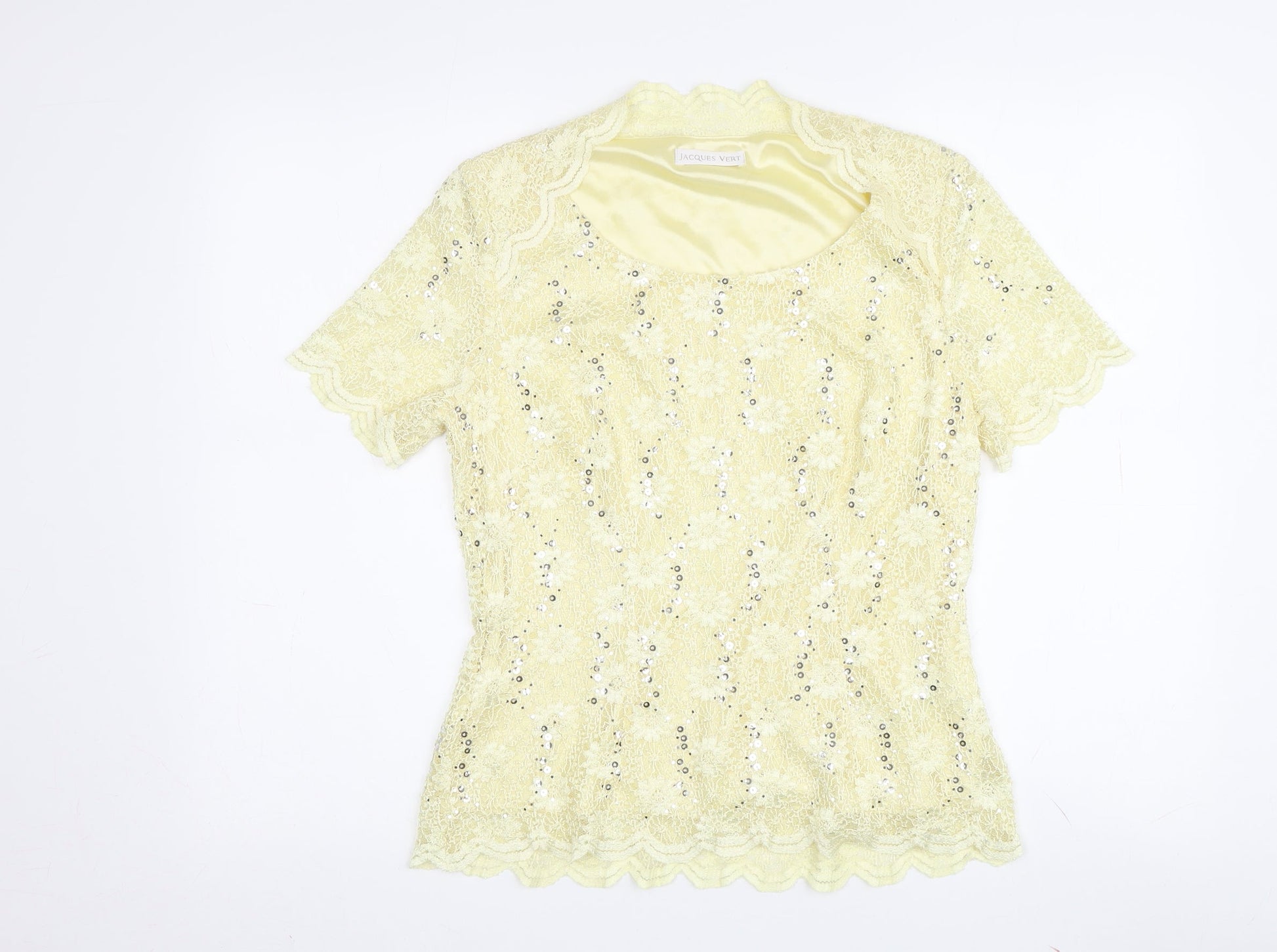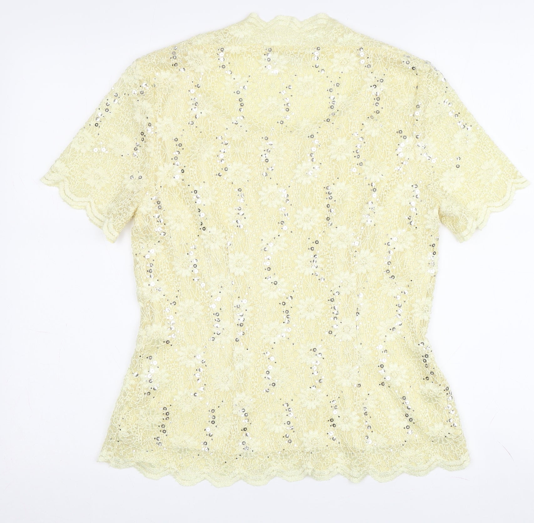 Jacques Vert Women's Yellow Sequin Lace Blouse - Size 10
