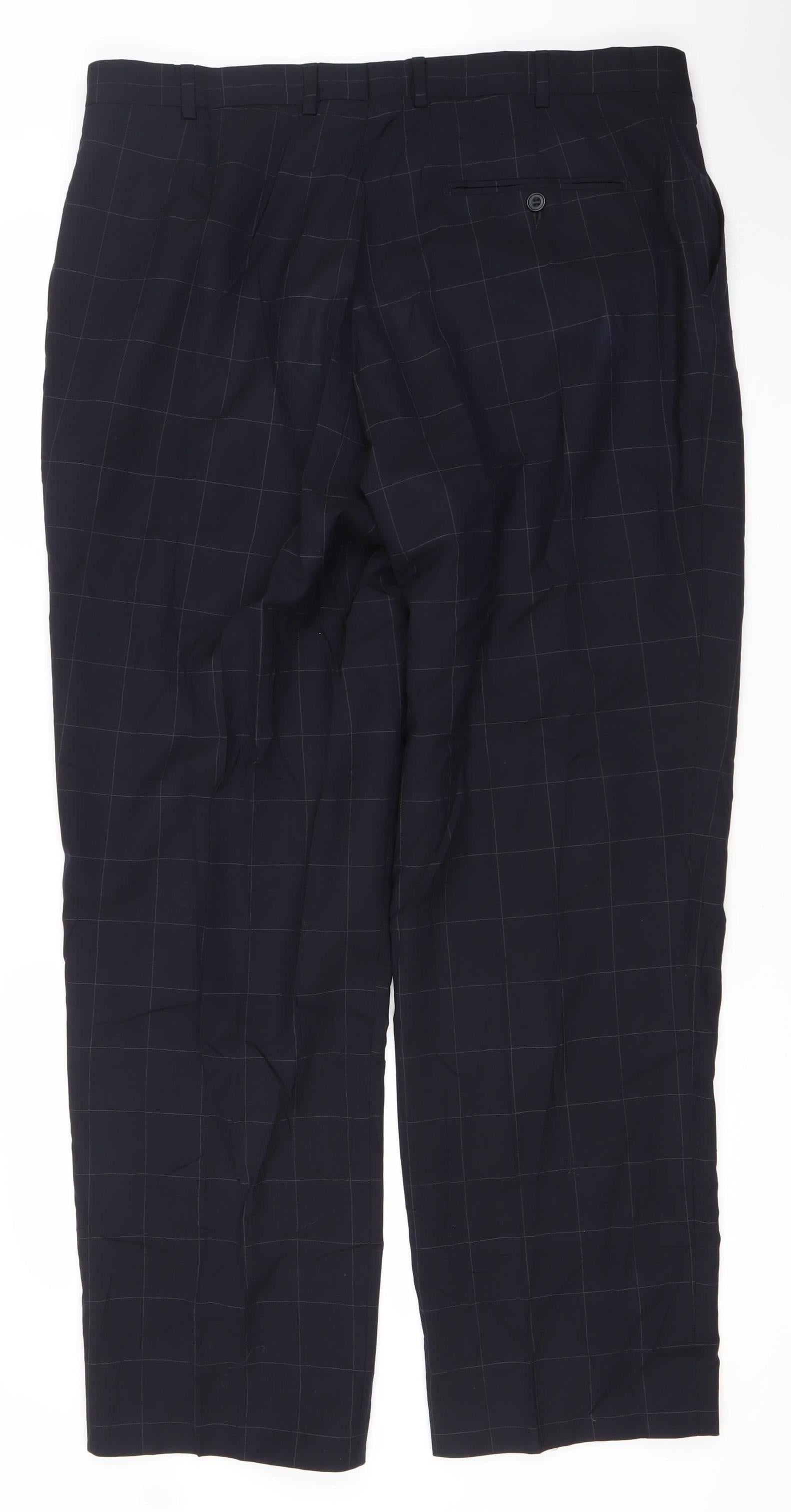 Jaeger Men's Black Check Wool Pleated Dress Pants 40in Classic Fit