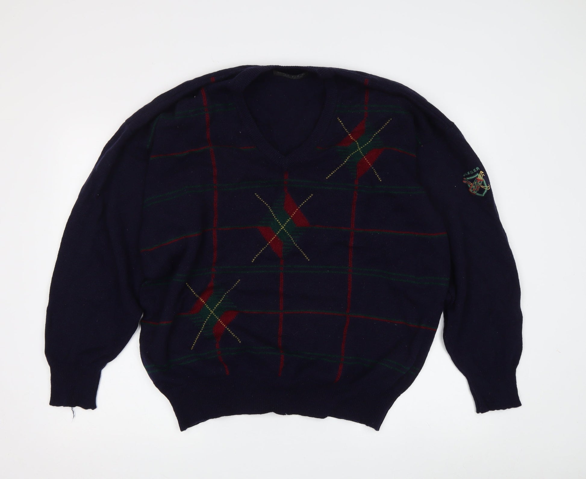 Jaeger Men's Blue Argyle Wool Pullover Jumper Size L