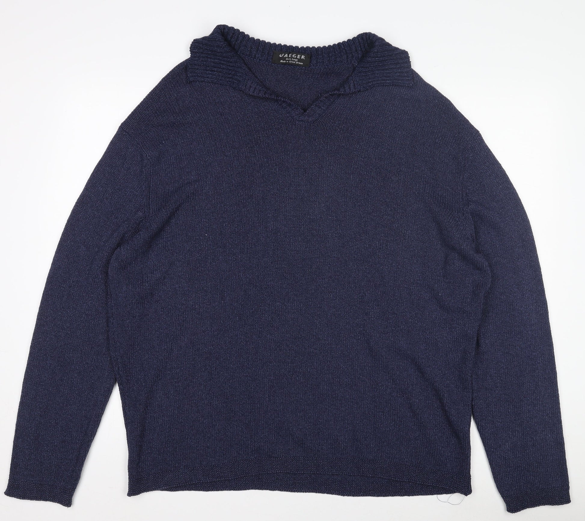 Jaeger Mens Blue Silk Cotton V-Neck Pullover Jumper XL