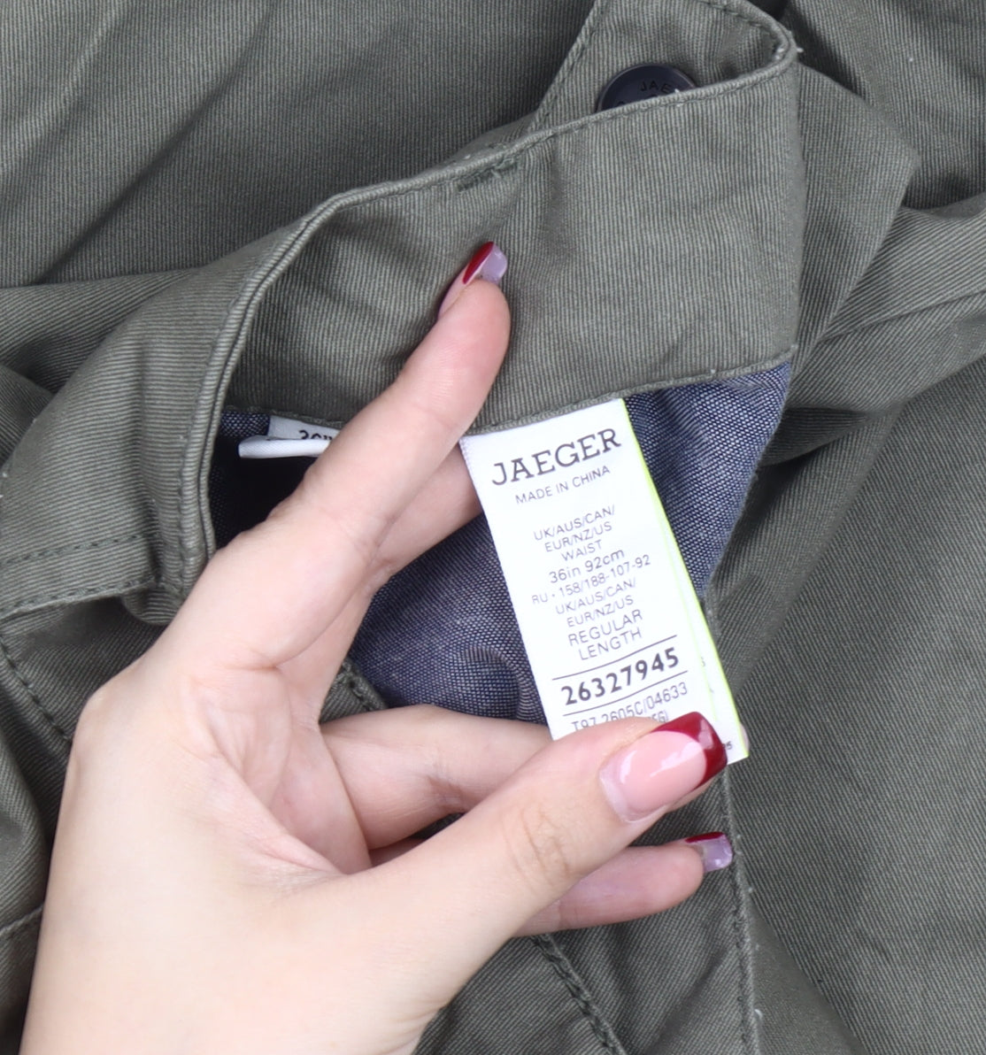Jaeger Men's Green Chino Trousers 36W 32L Regular Fit Cotton