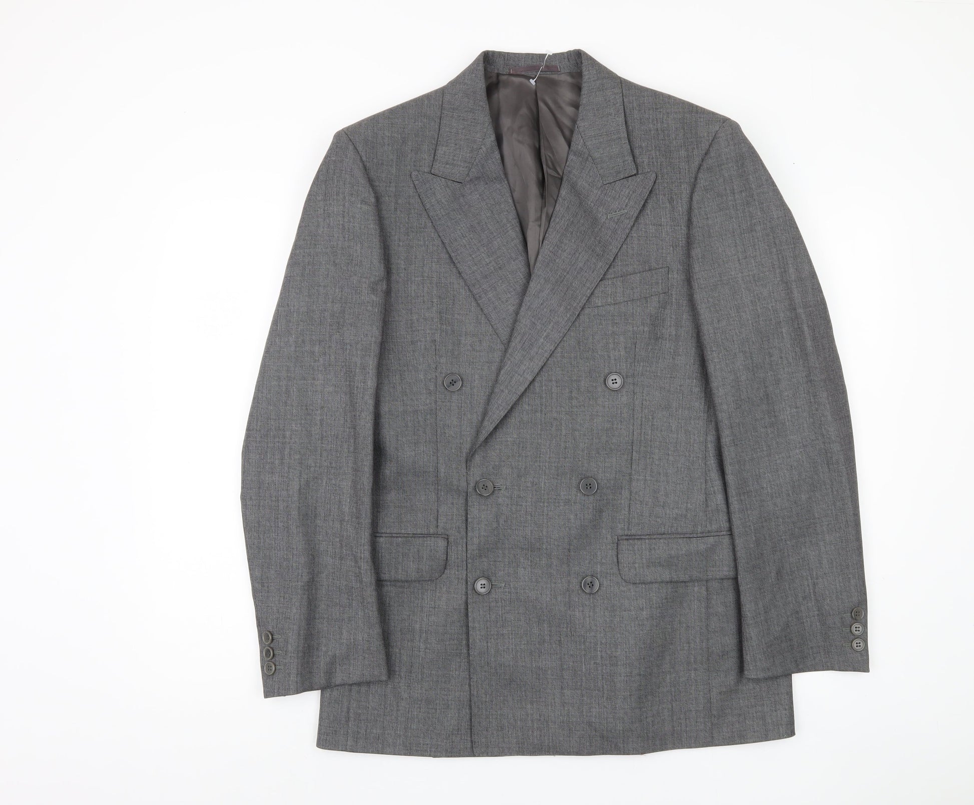 Jaeger Men's Grey Wool Double-Breasted Blazer Size 46