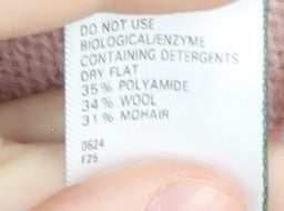 - Material Breakdown: 35% Polyamide 34% Wool 31% Mohair