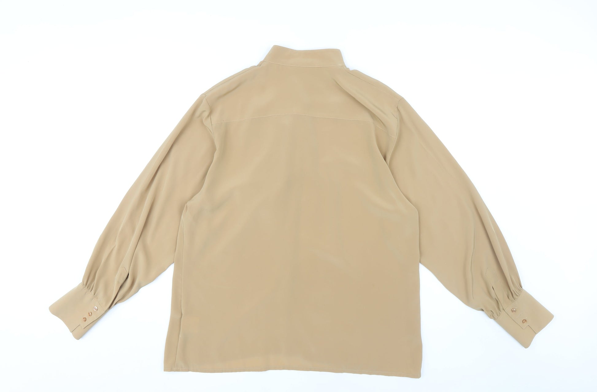 Jaeger Women Beige Ruffle Blouse, Size 12, Vintage