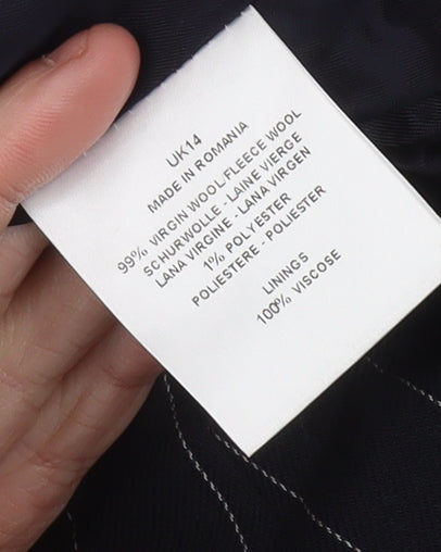 Jaeger Women Black Pinstripe Wool Midi Pencil Skirt UK 14