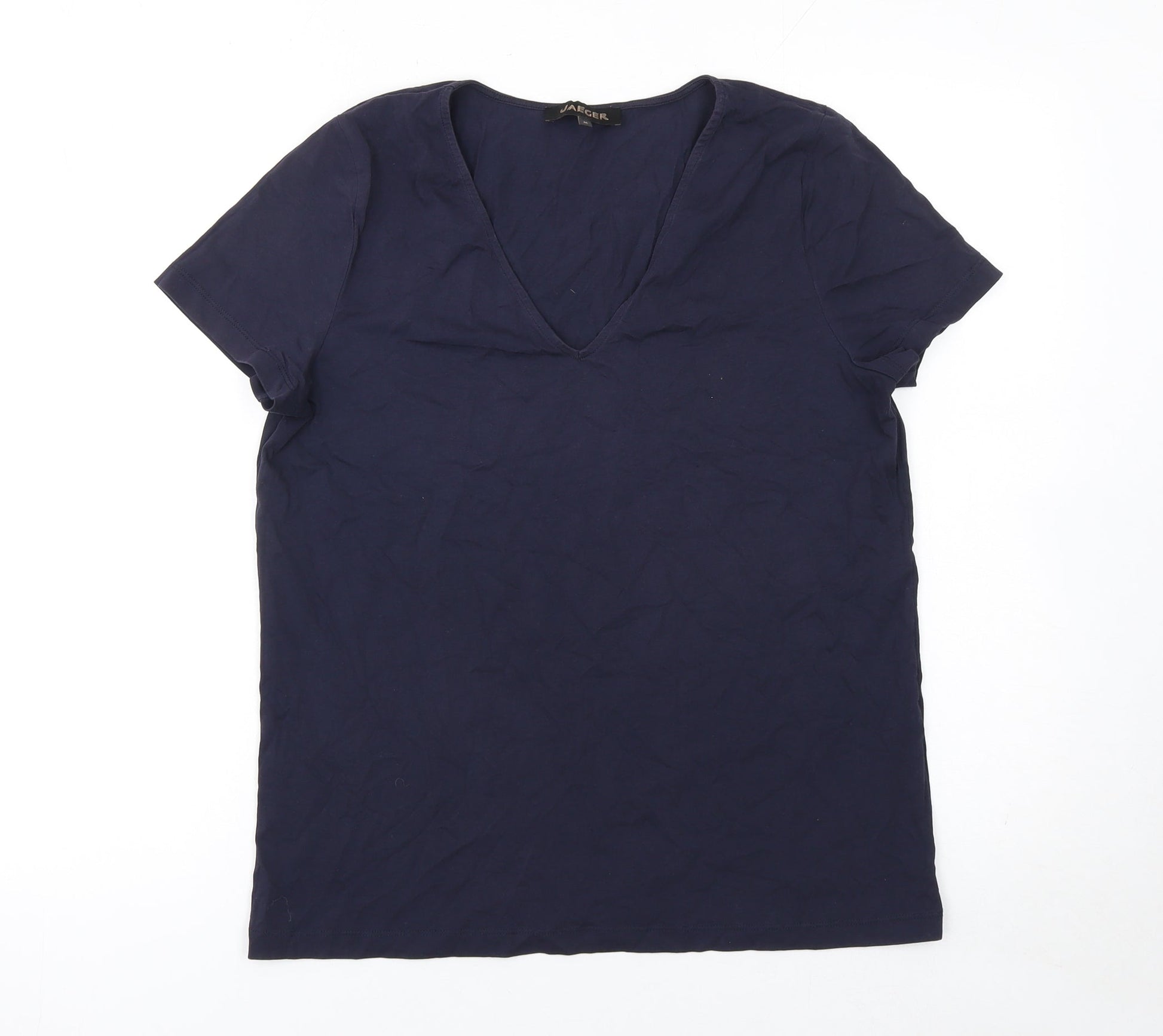 Jaeger Women Blue Basic V-Neck Cotton Short Sleeve T-Shirt M