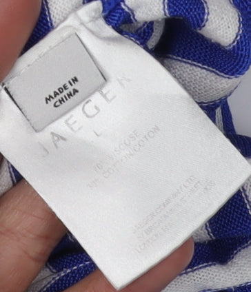 Jaeger Women Blue Striped Crew Neck Jumper L