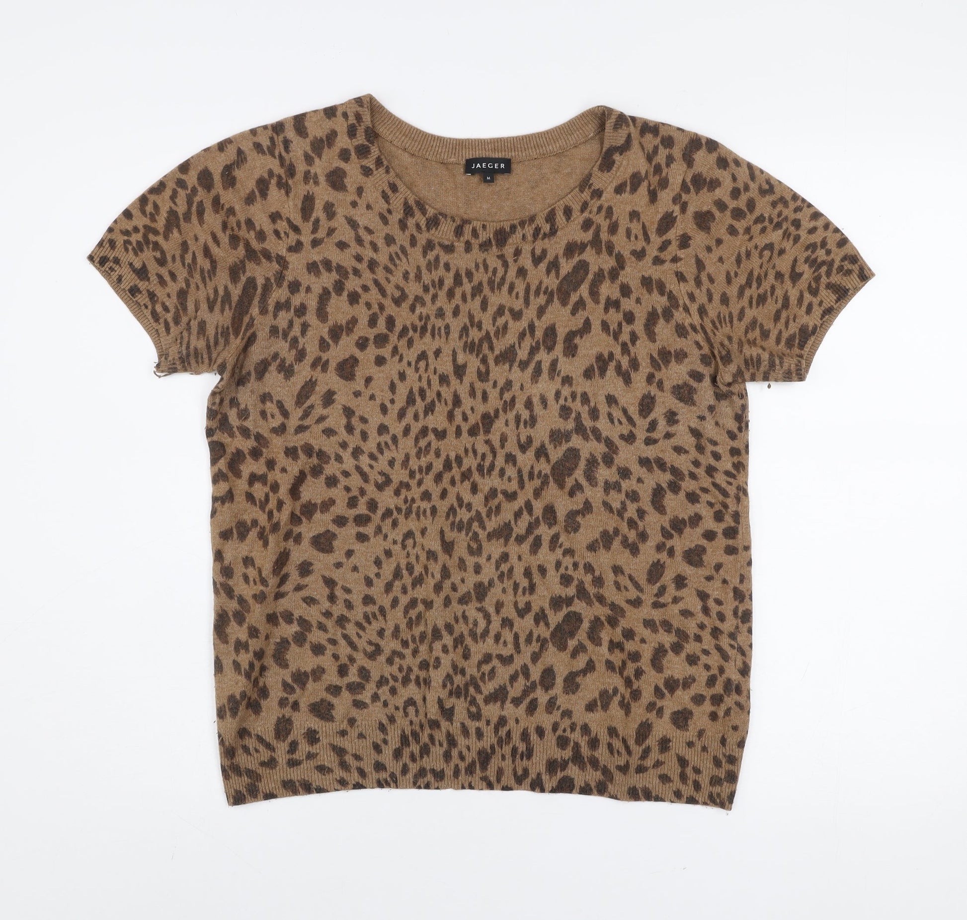 Jaeger Women Brown Animal Print Wool Blend Short Sleeve Top M