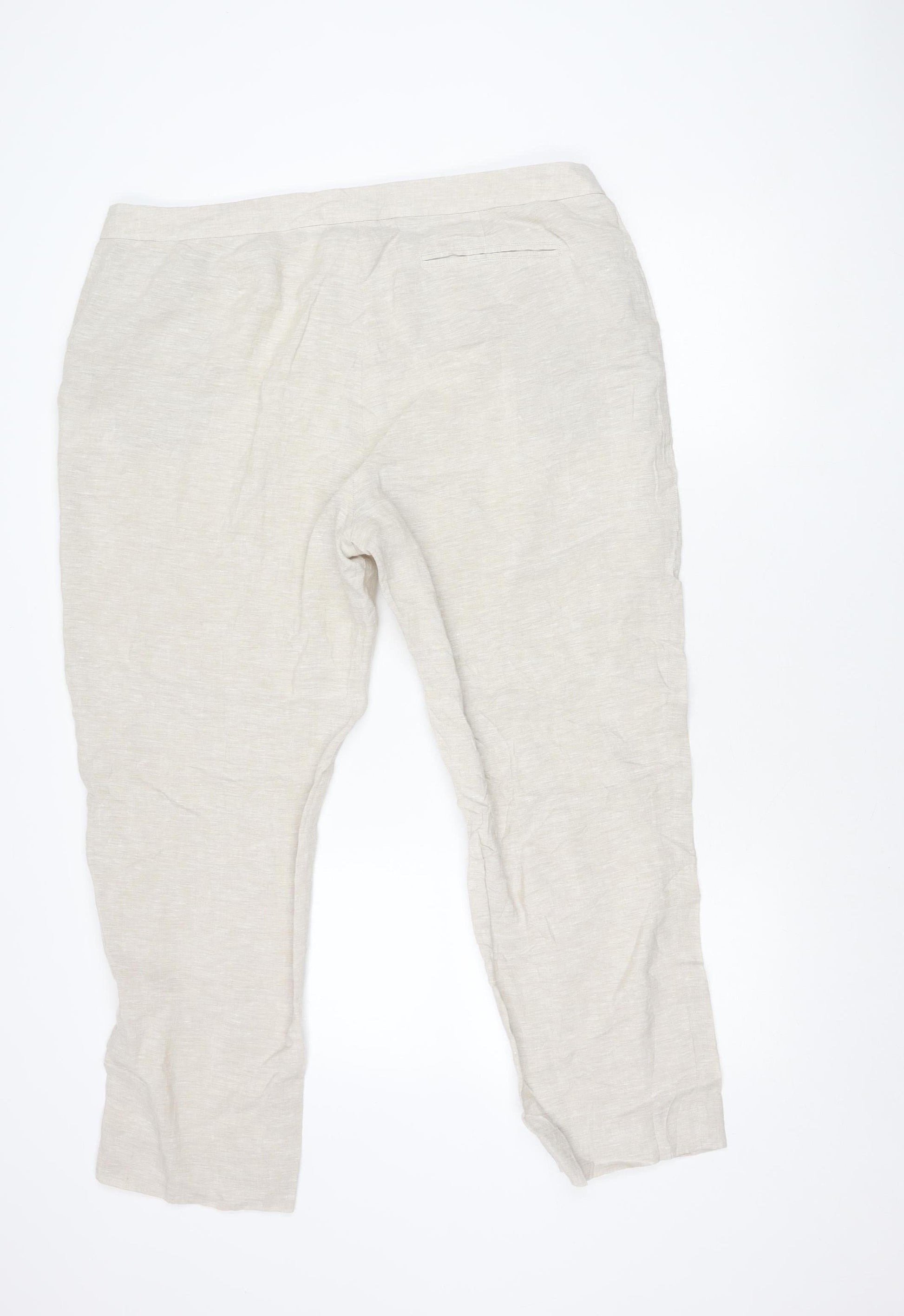 Jaeger Women’s Beige Linen Trousers Size 18 Regular Fit Summer