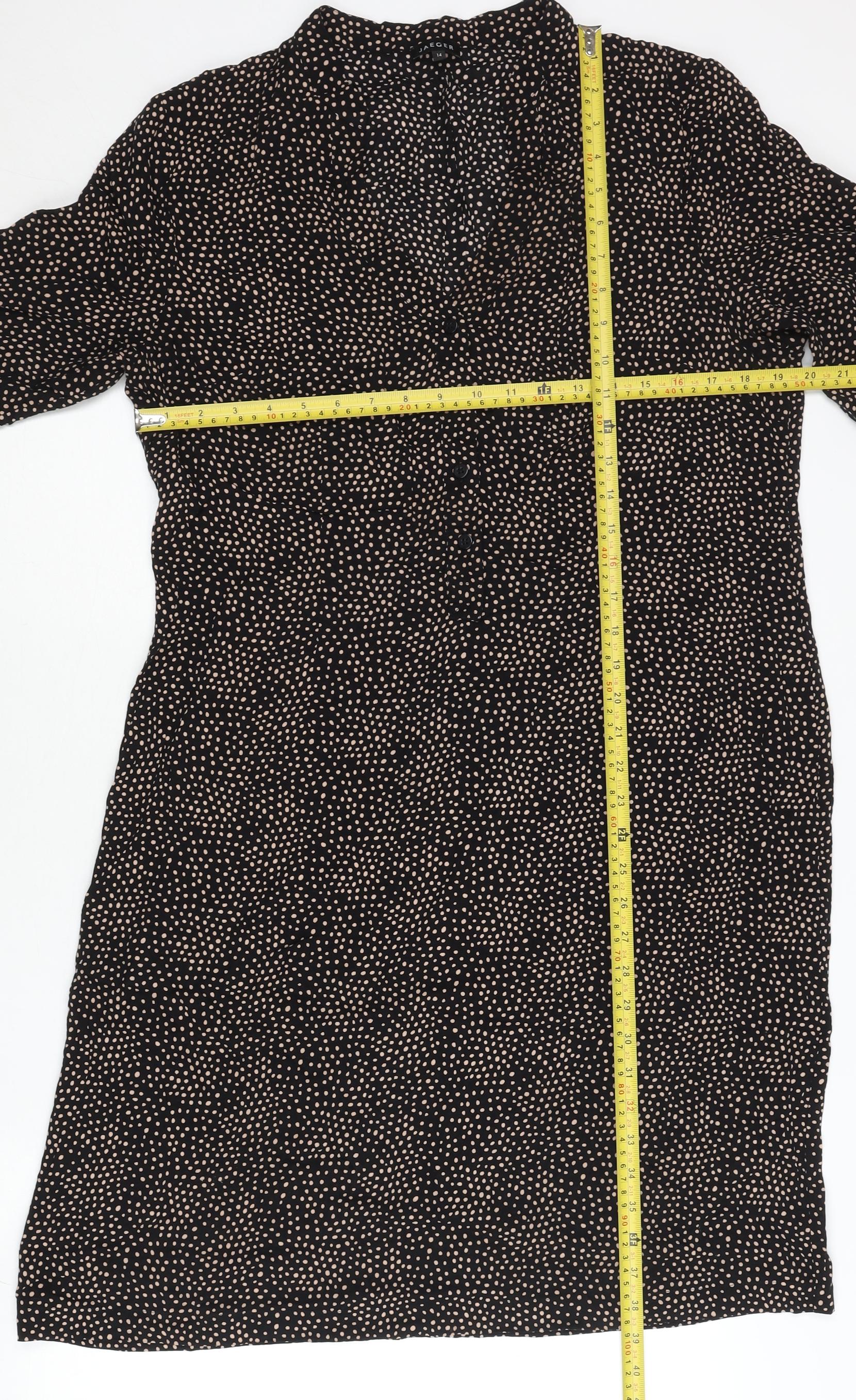 Jaeger Women’s Black Polka Dot Shirt Dress Size 14 Viscose Workwear
