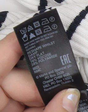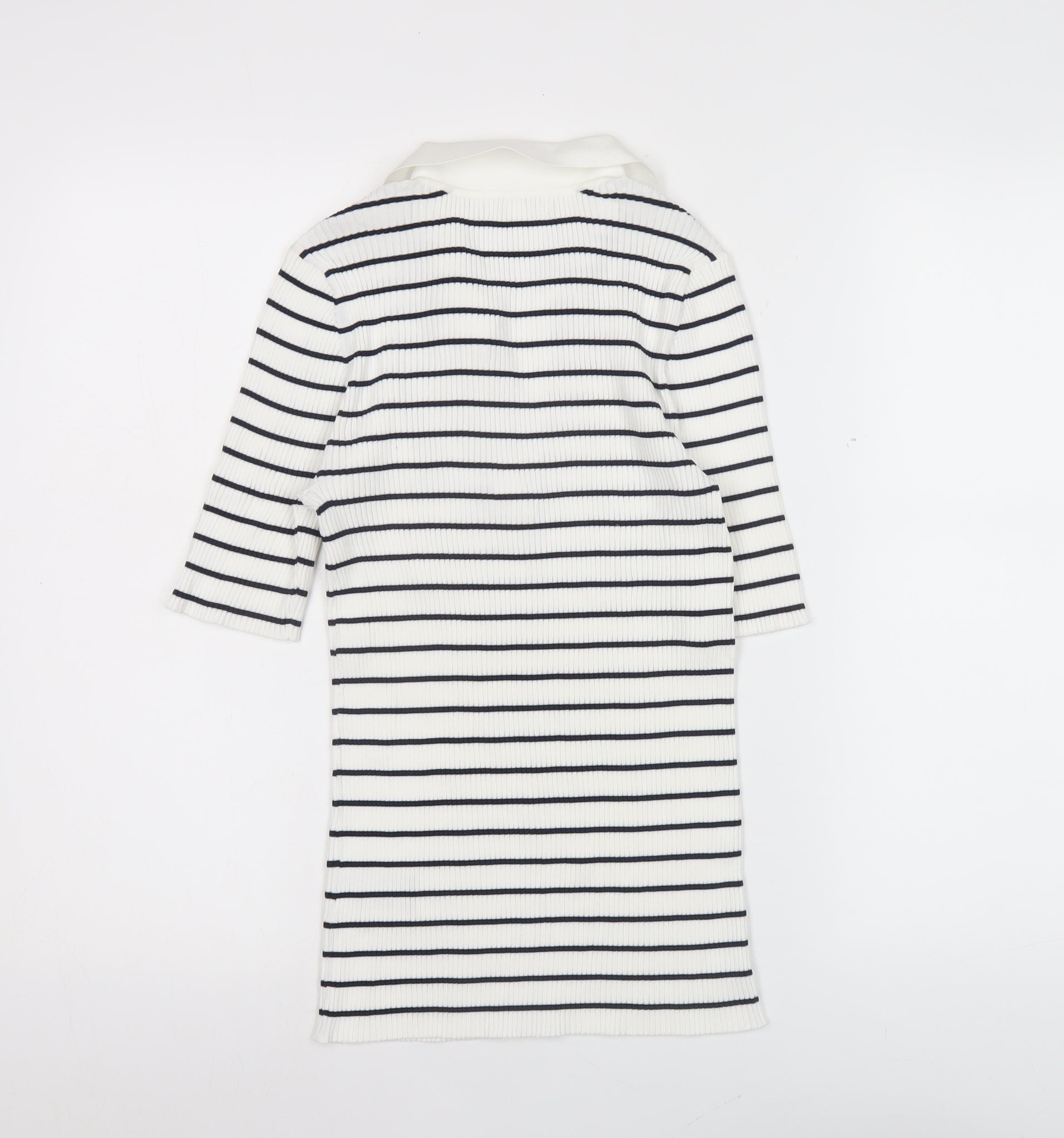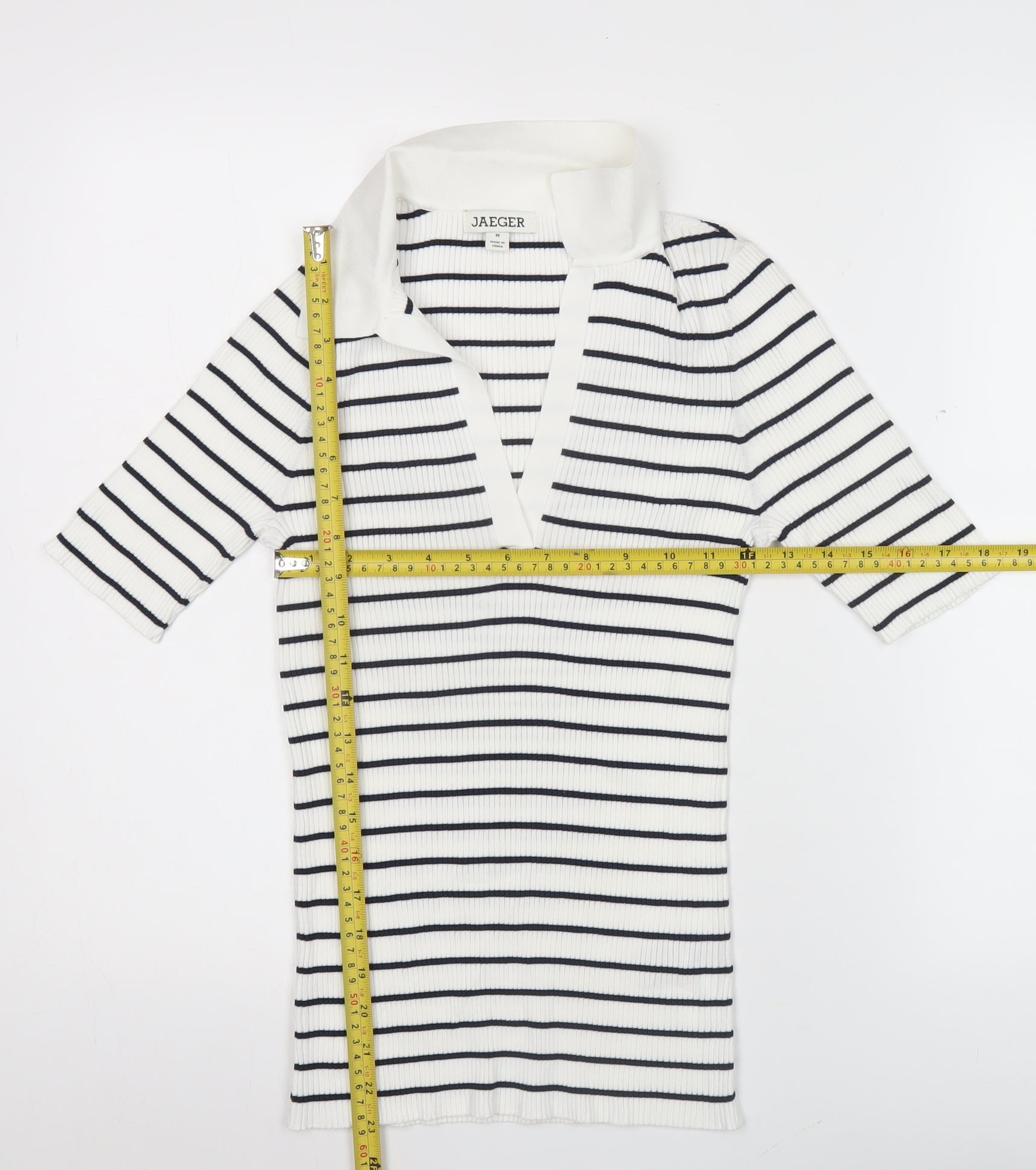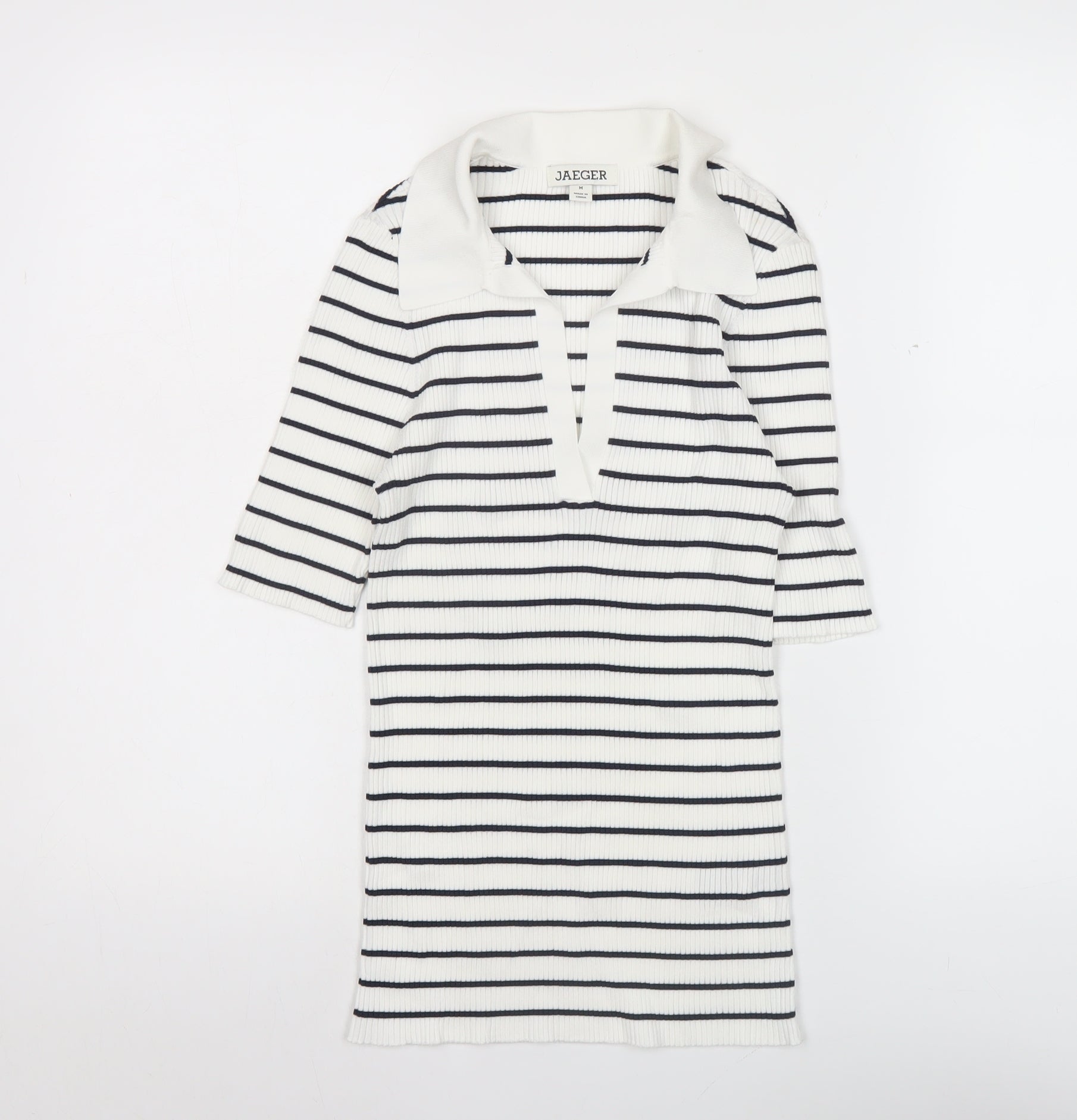 Jaeger Women’s White Striped Polo Knit Top Size M Collared Nautical Style