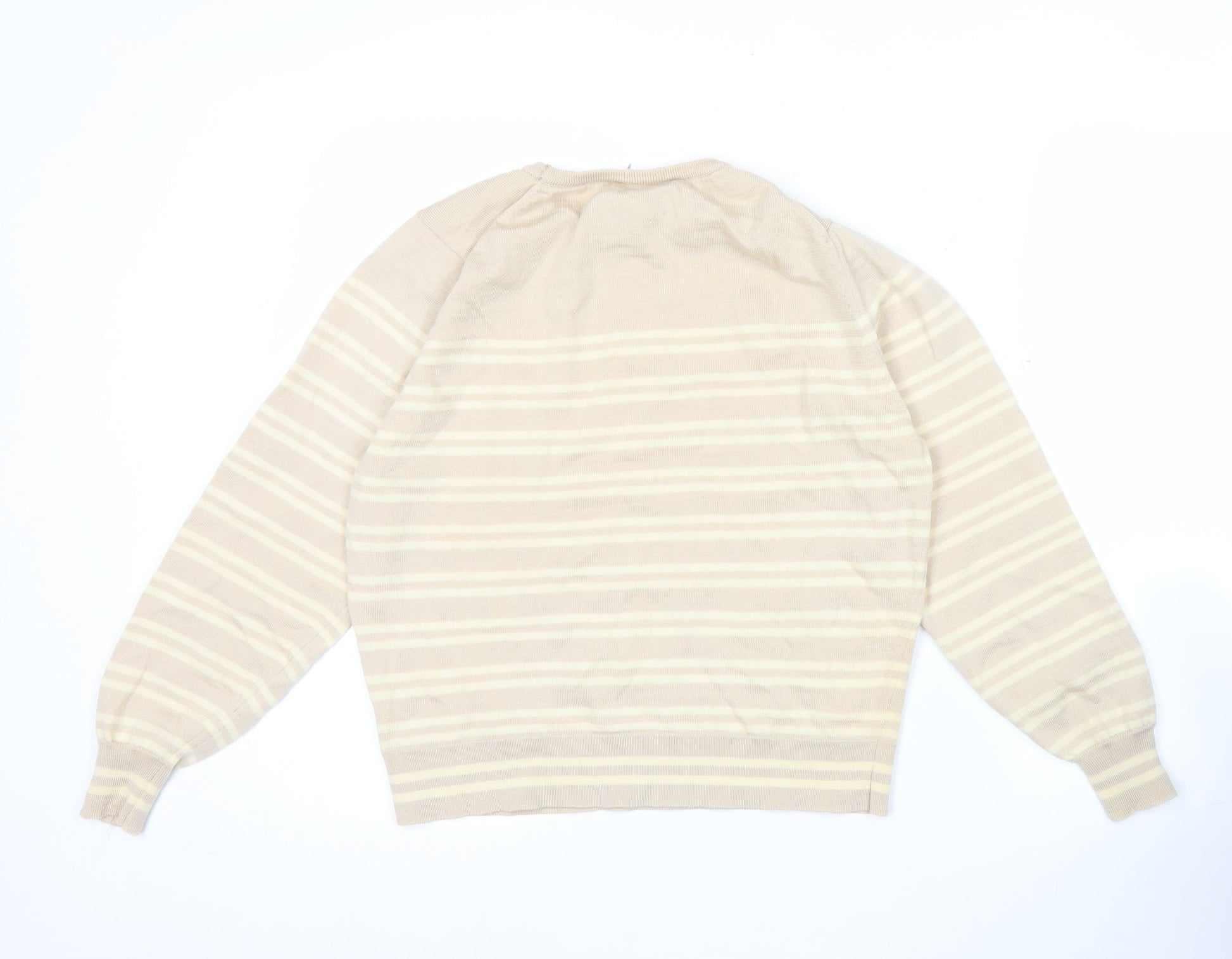 Jaeger Womens Beige Wool Jumper Size 12 Striped Crew Neck Pullover