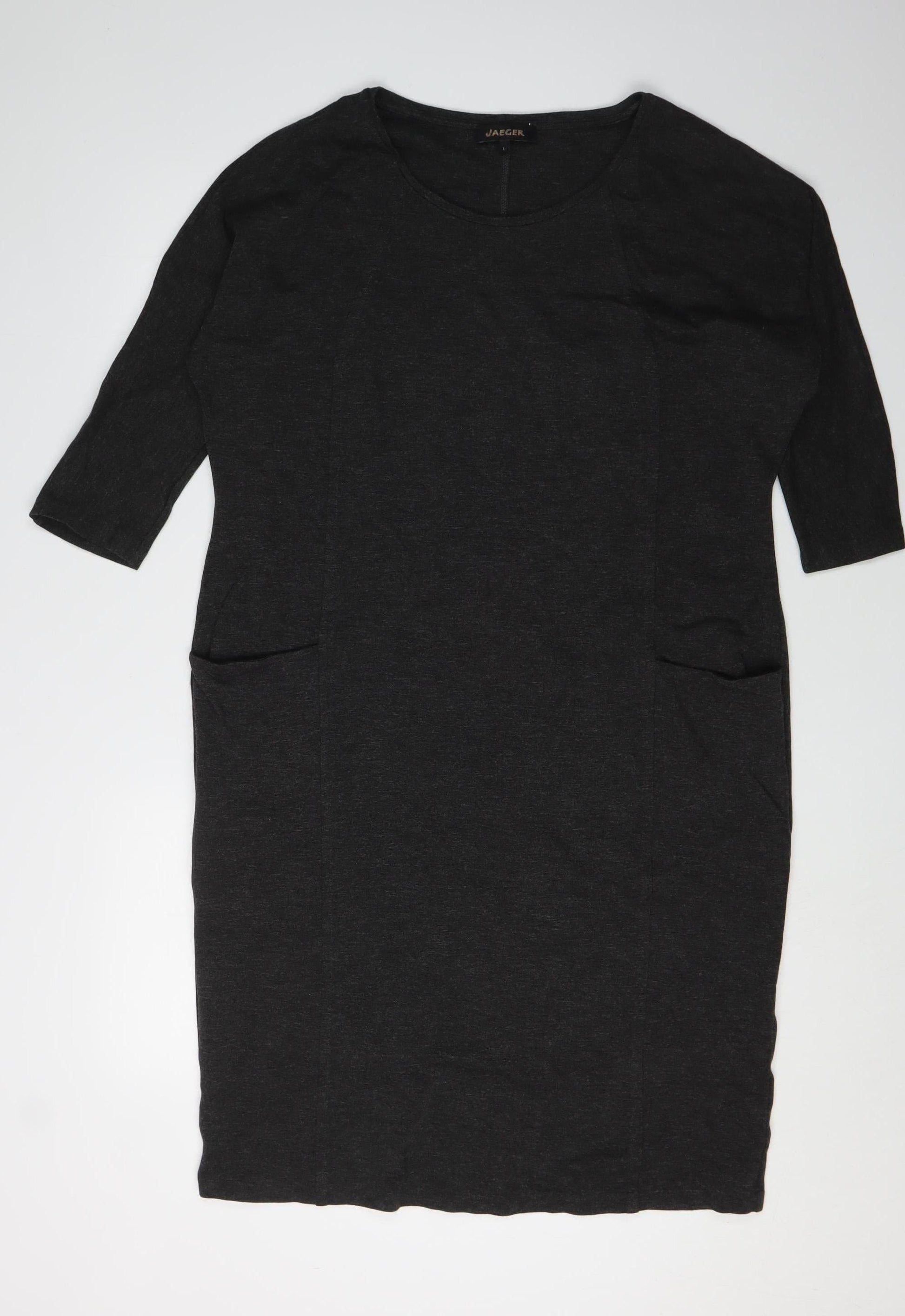 Jaeger Women's Black Shift Dress L 3/4 Sleeve