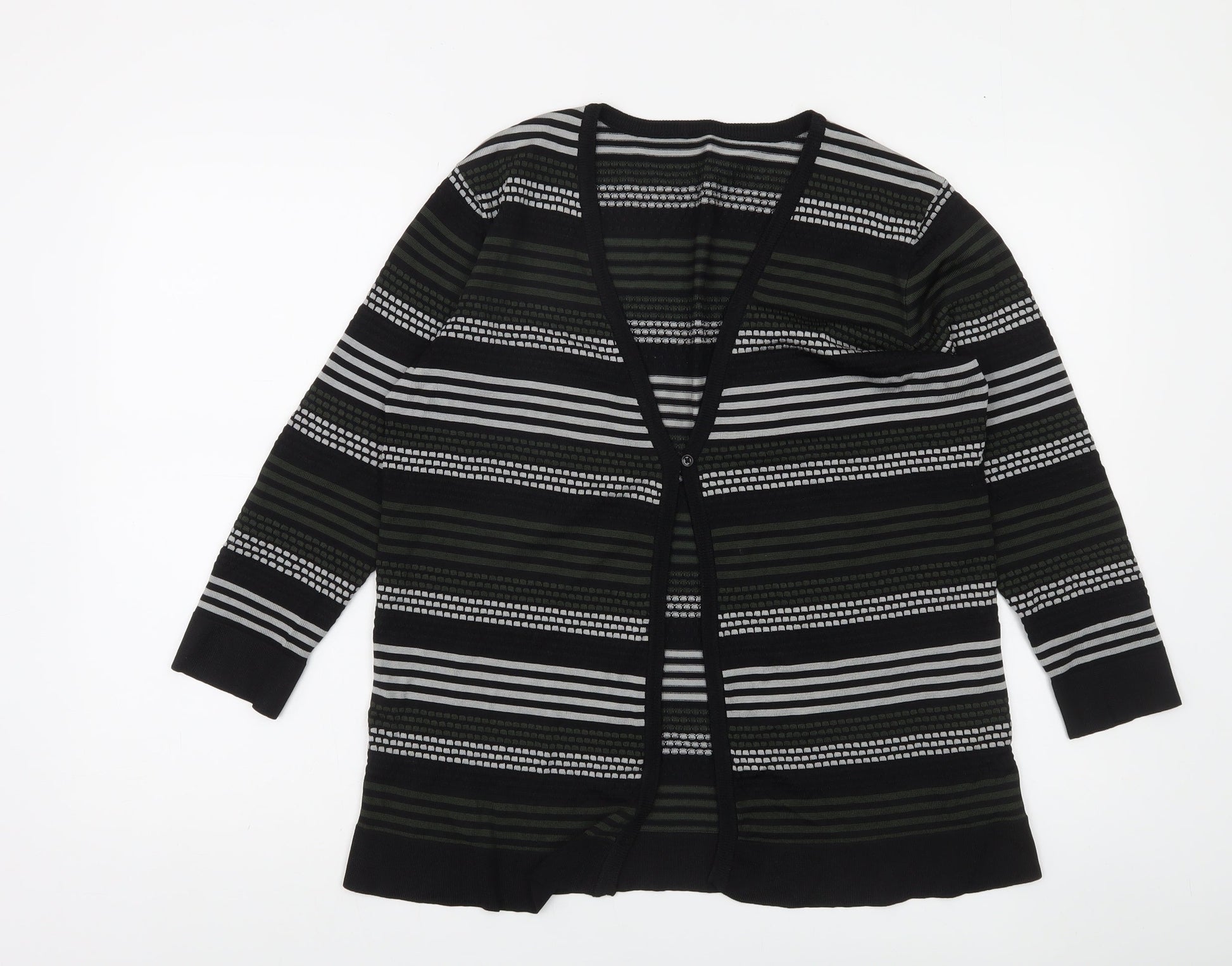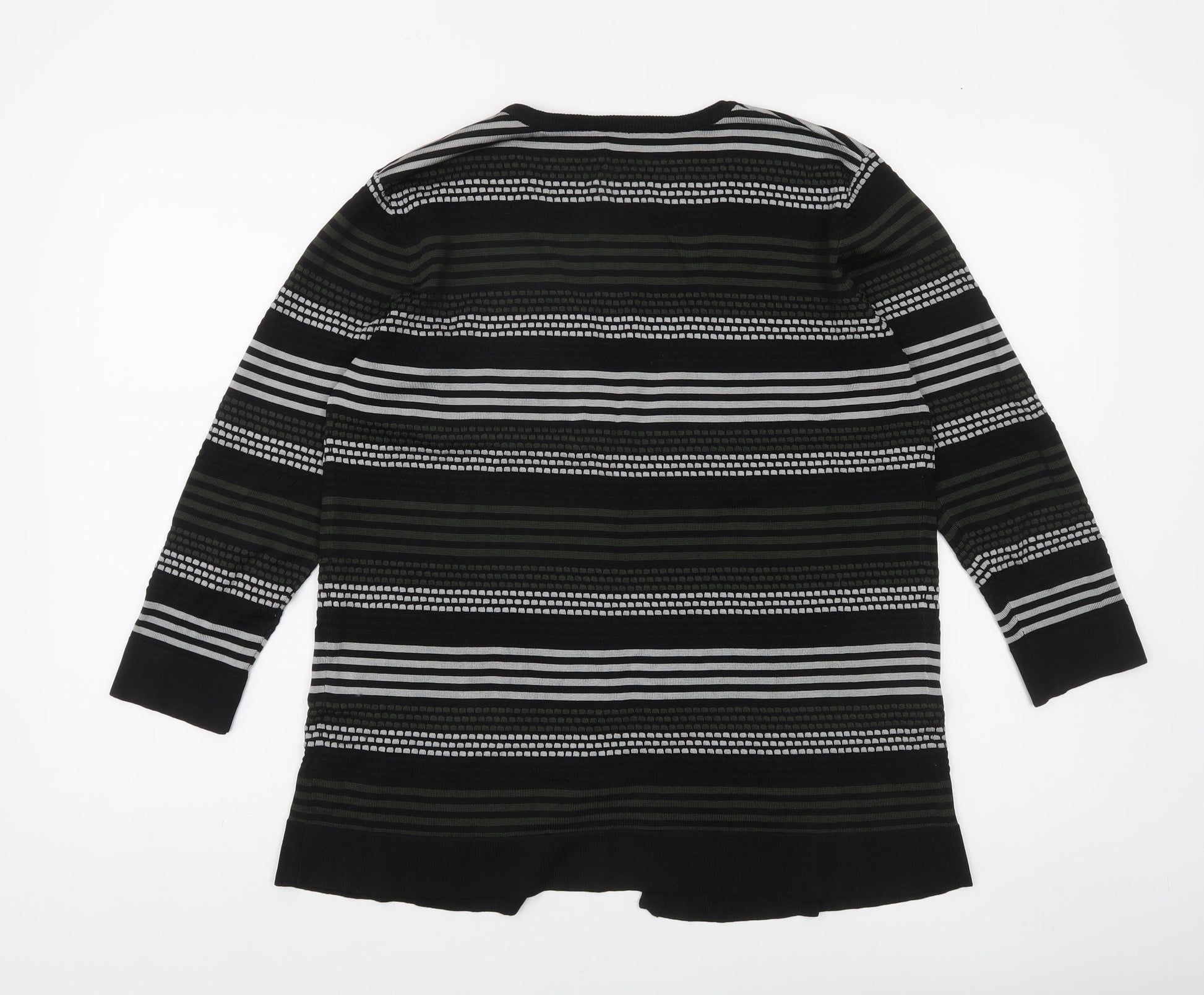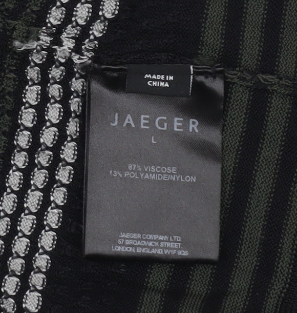 Jaeger Womens Black Striped V-Neck Long Sleeve Knit Cardigan L