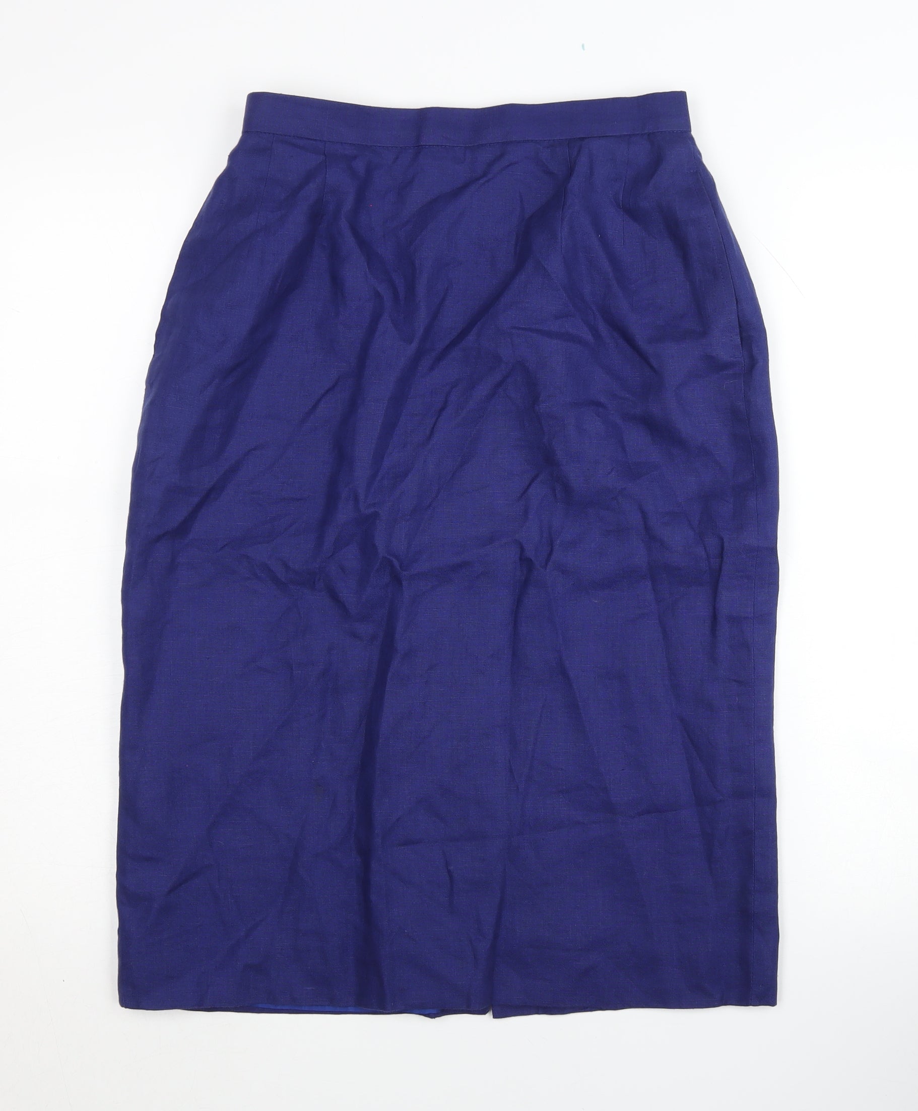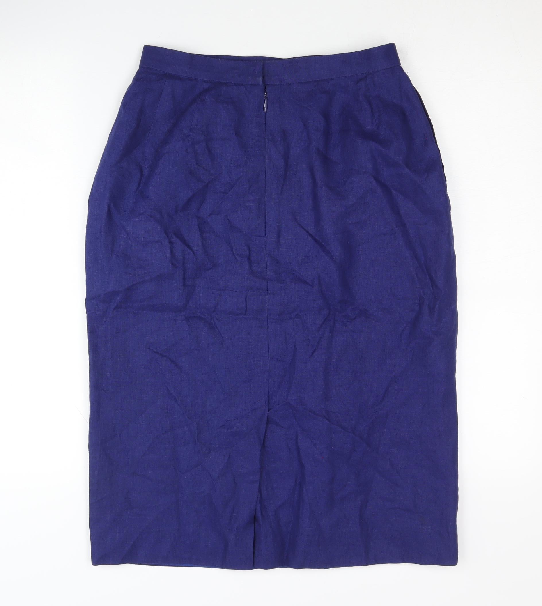Jaeger Women's Blue Pencil Skirt, UK 12, 100% Flax