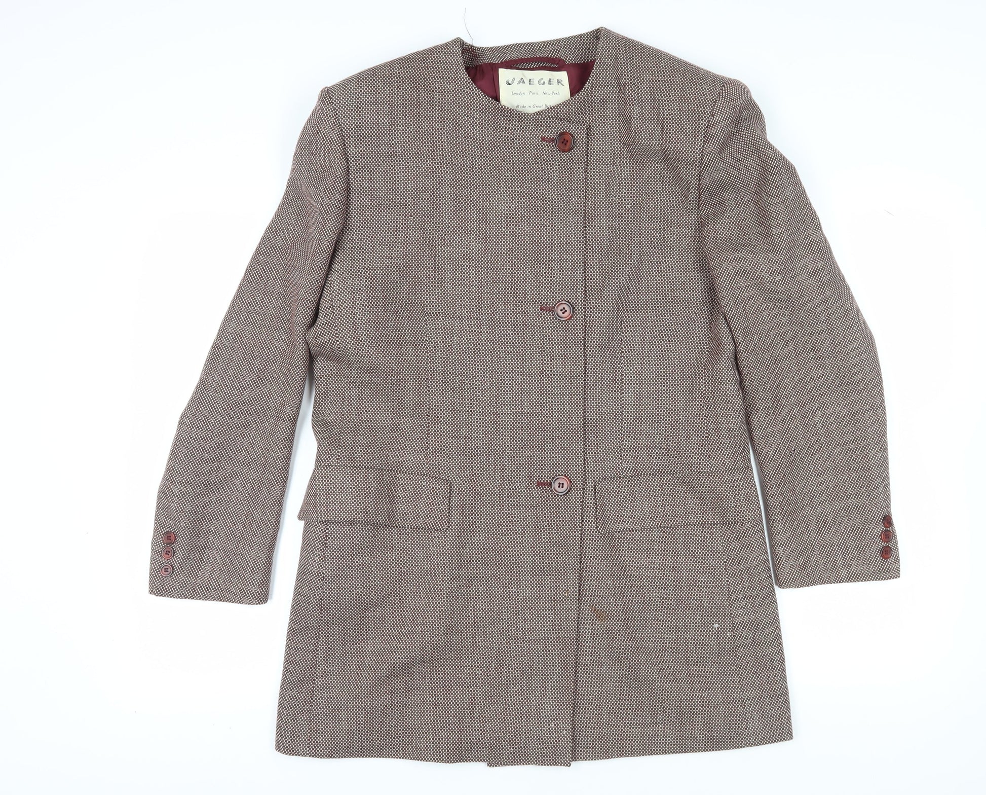 Jaeger Women's Brown Long Geometric Wool Blazer Sz 14