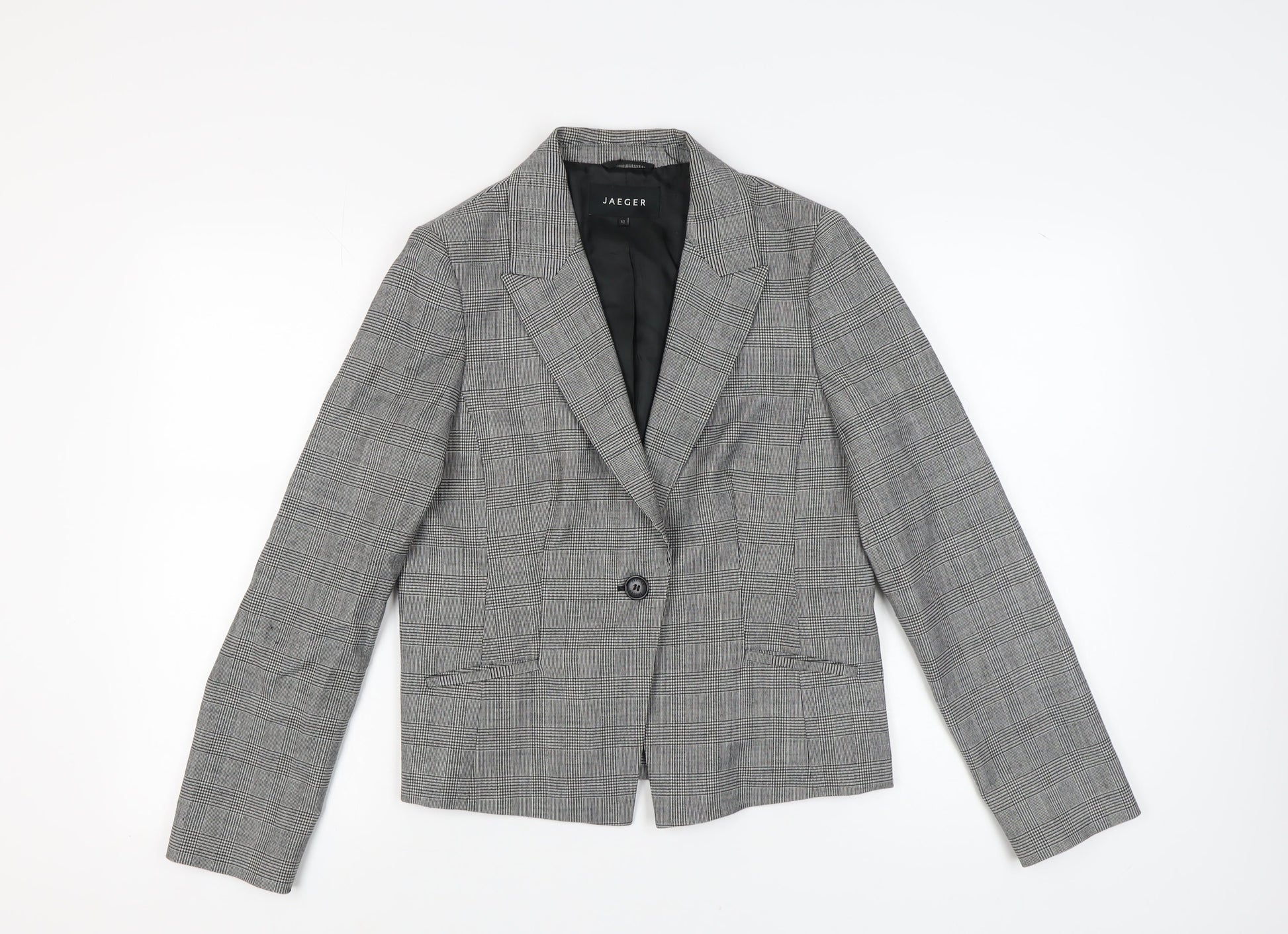 Jaeger Women's Grey Check Wool Blazer, UK 12
