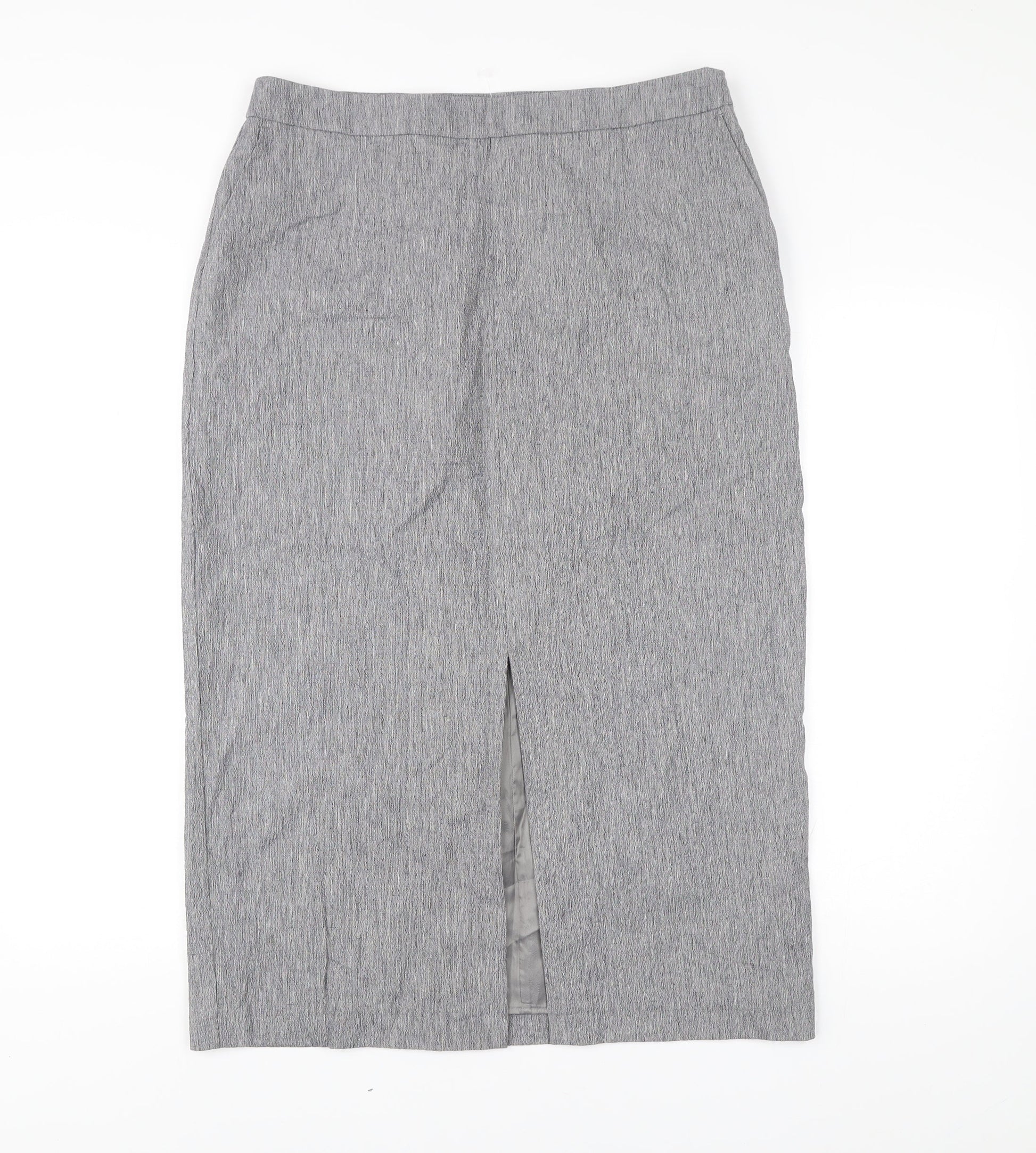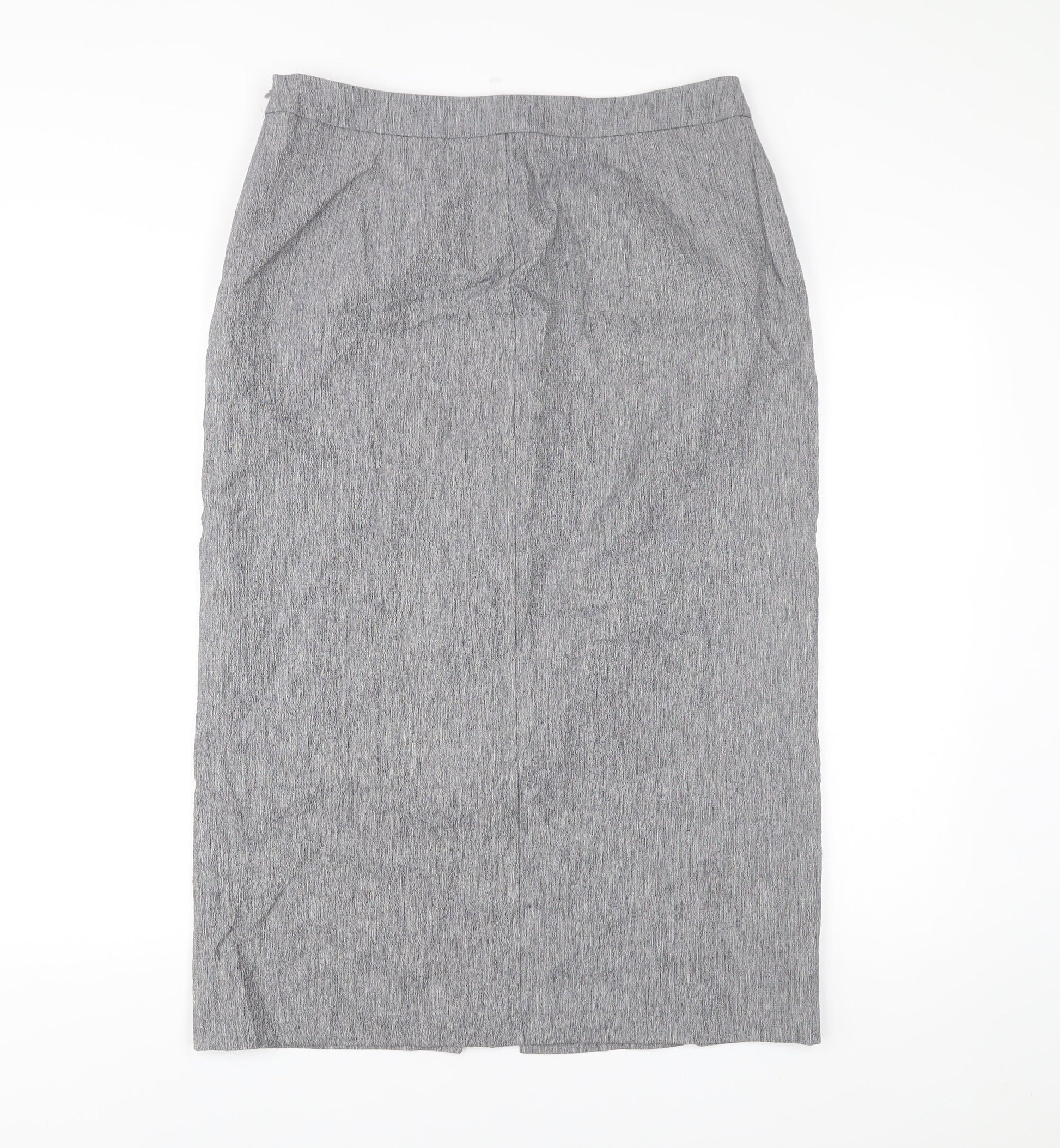 Jaeger Womens Grey Size 14 Midi Pencil Skirt Workwear Linen Blend